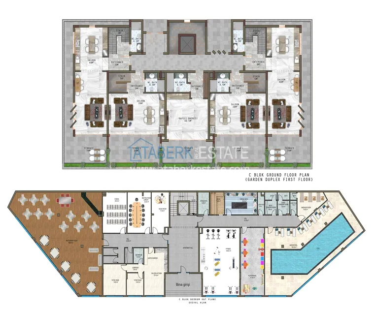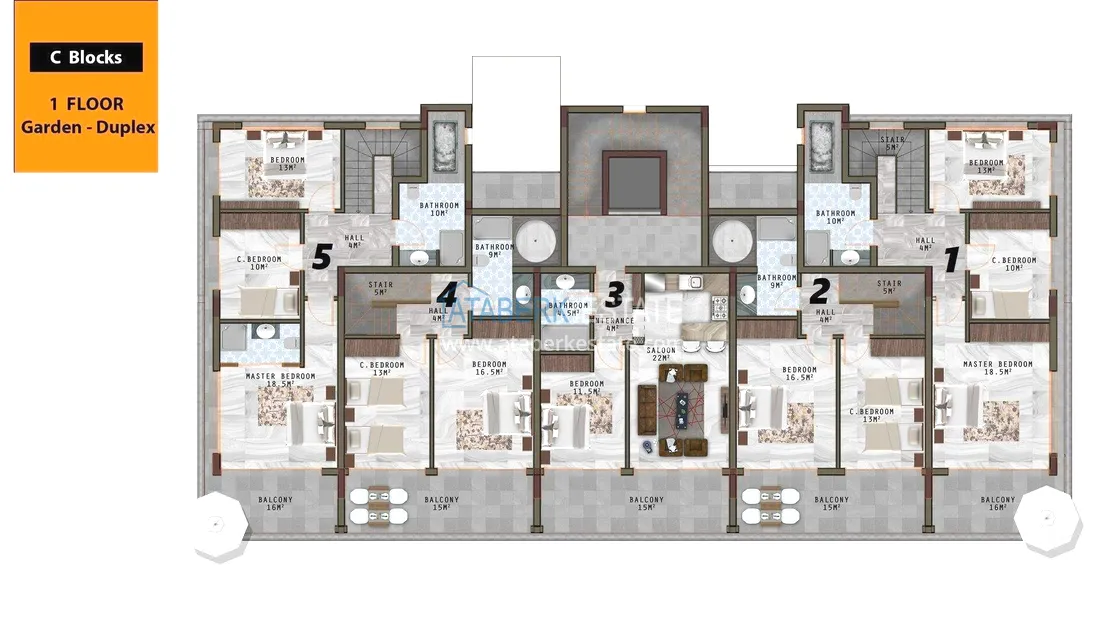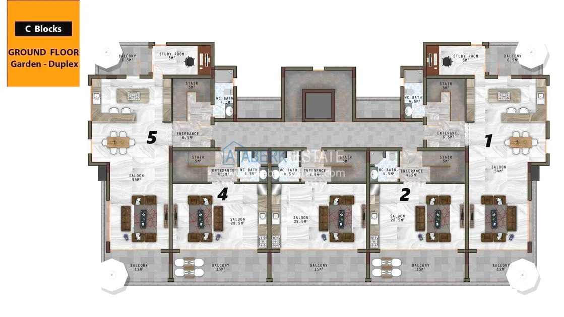 to the central part of Alanya.The residential complex is designed in modern architecture and implemented using technological solutions. It consists of three blocks, combined with a well-maintained closed area with a variety of infrastructure for recreation and everyday comfort. The complex has solar panels, a centralized water filtration system, and 24-hour security. The area is designed for comfortable travel and includes areas for recreation and walking
