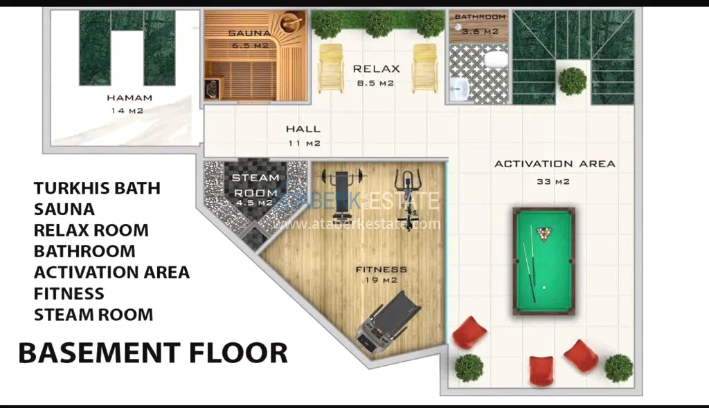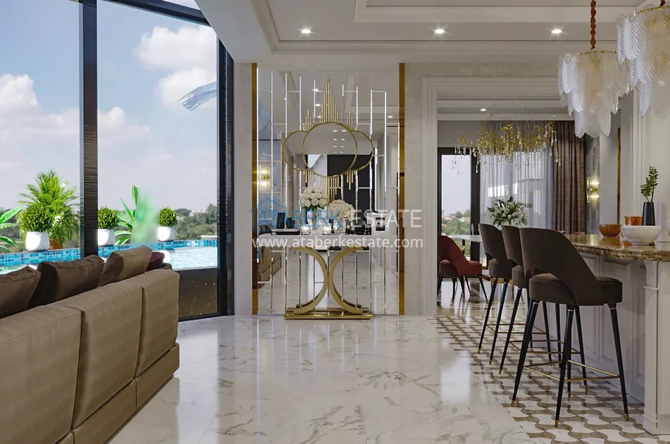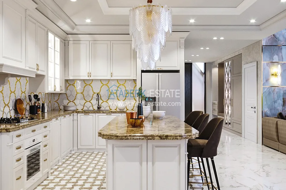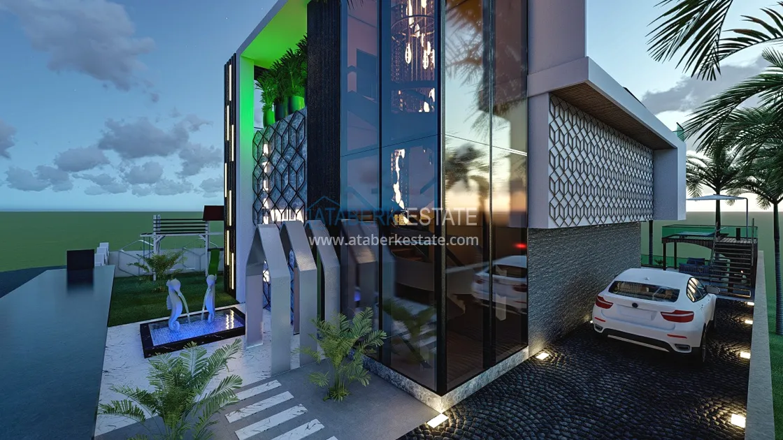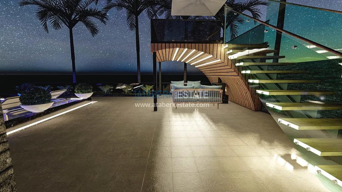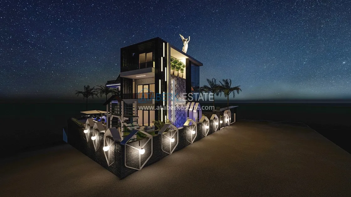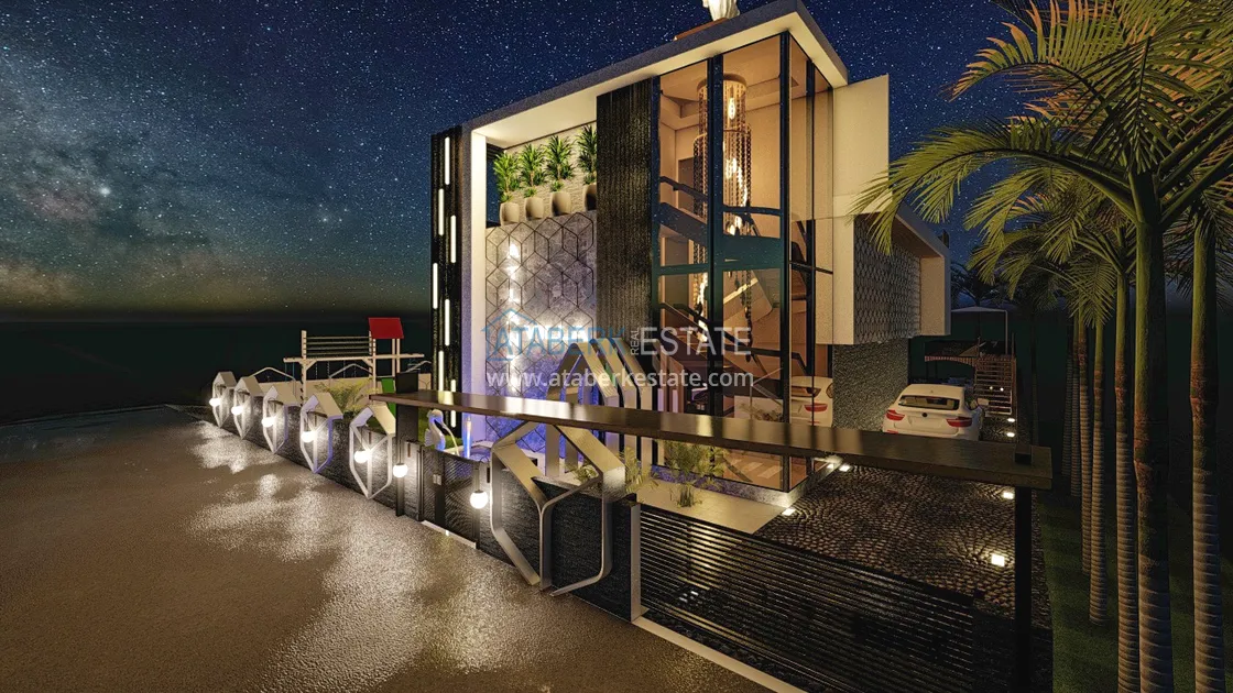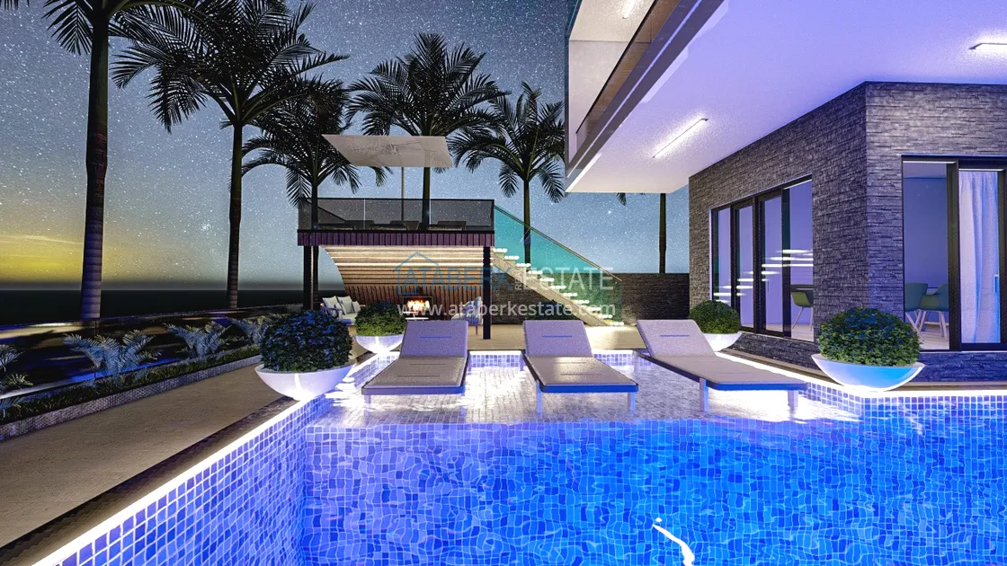 This is undoubtedly the best offer for people who dream of buying a cottage in a secluded and peaceful place with a picturesque view. An ultra-modern villa with an exclusive architectural style and design, using high quality materials and cutting-edge technology. The living area of the house will be 564 m2 - 2 residential floors, a garage for two cars and a basement of 112 m2. 5+1 layout - living room with fireplace, large open plan kitchen, five bedrooms, bathrooms on each floor and four balconies with magnificent, scenic views. For convenience, the layout provides fitness, sauna, hammam, jacuzzi, billiard room. The project also provides for a private house territory with all amenities for comfortable living and recreation - a swimming pool with a waterfall of 55 m2, a generator, a garden. The house will be located in a mountainous area, a short distance from the sea - 2 km.