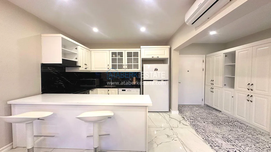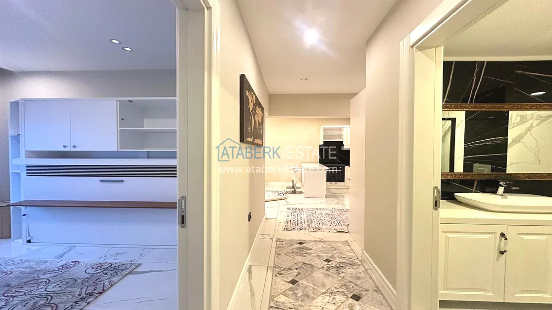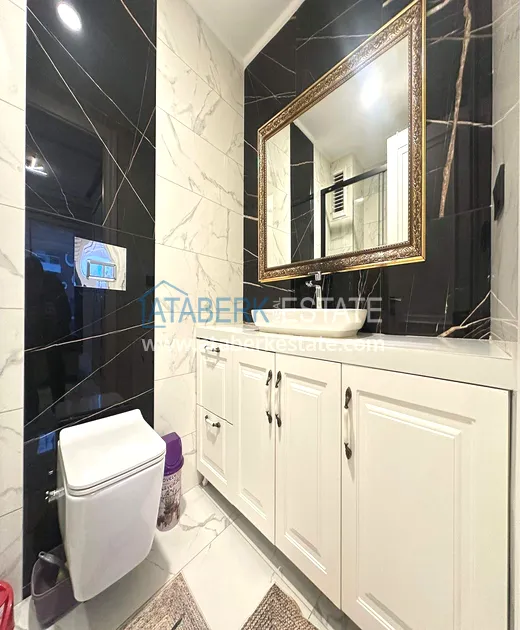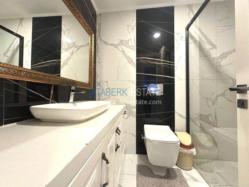 . The2+1 apartment with a total area of 95 m² is located on the 3rd floor and includes a living room with an American-style kitchen, two bedrooms, two bathrooms and a balcony overlooking the sea. The south-west orientation provides soft daylight and beautiful sunsets. The property is offered unfurnished, despite the fact that the photo is furnished - this makes it possible to decorate the interior completely for yourself.