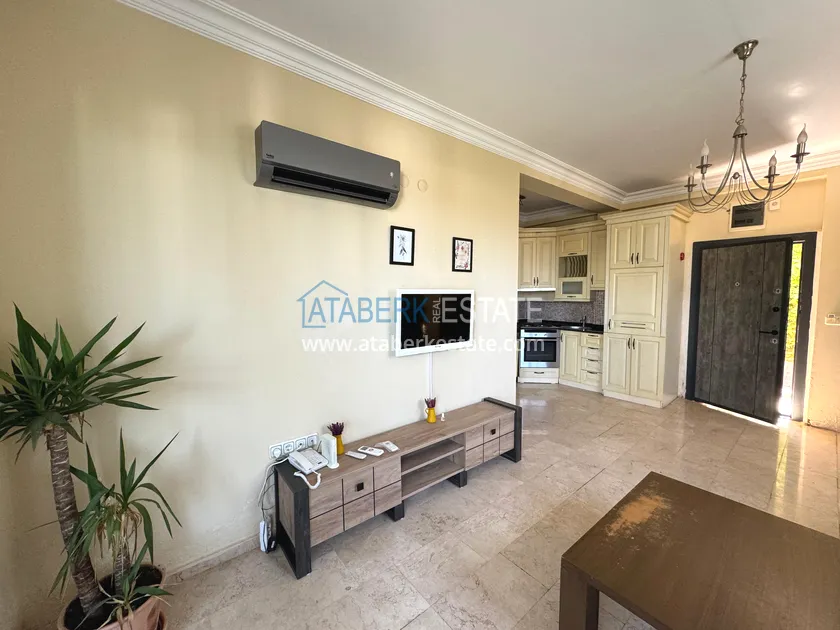 Cozy apartments have a 1 + 1 layout and a total area of 55 m2. This area includes: a living room combined with a kitchen area, a bedroom of 15 m2, a combined bathroom with a bathtub and a small balcony. The apartment has new Beko air conditioners. The rest of the household appliances are Siemens. The apartment also has its own plot of land and a cozy garden. The property is offered for sale as shown in the photo.