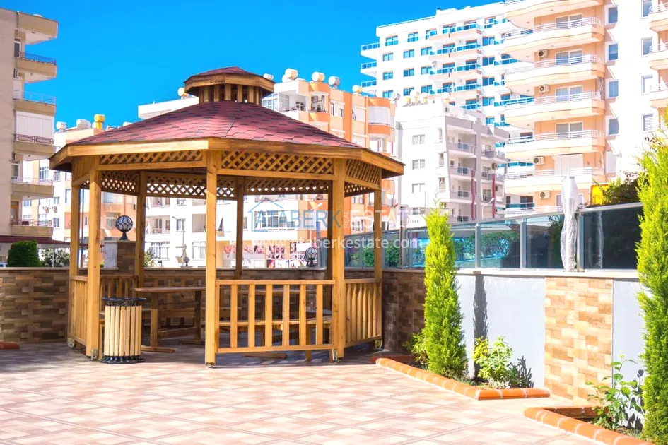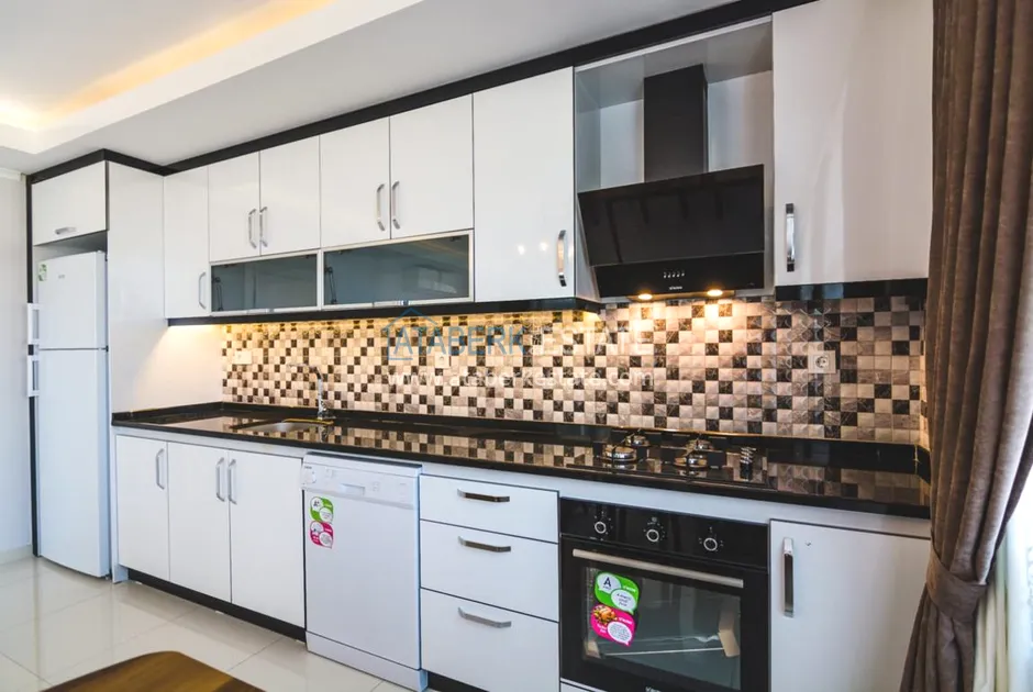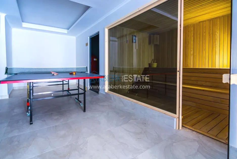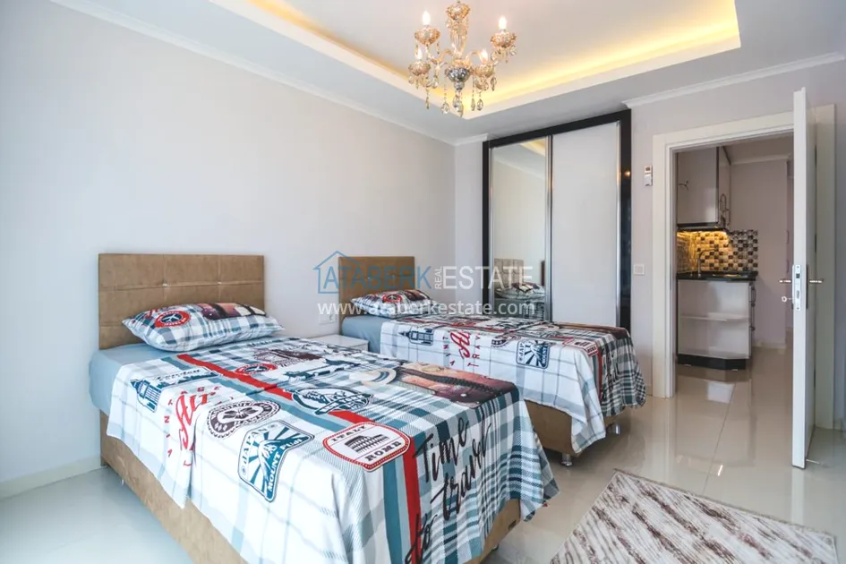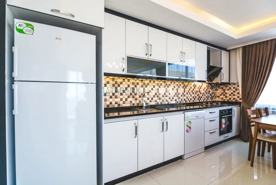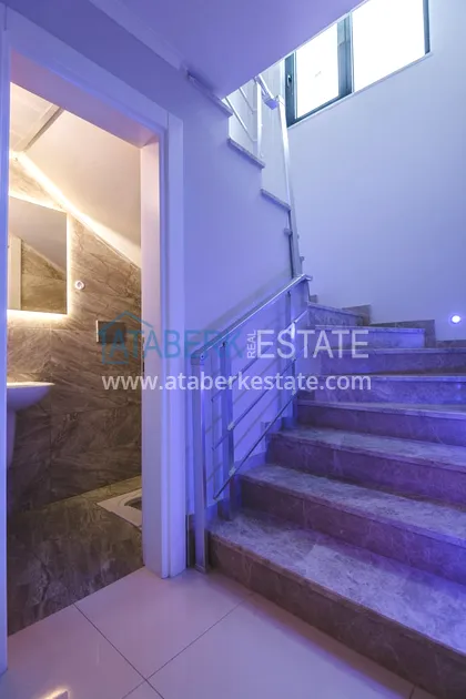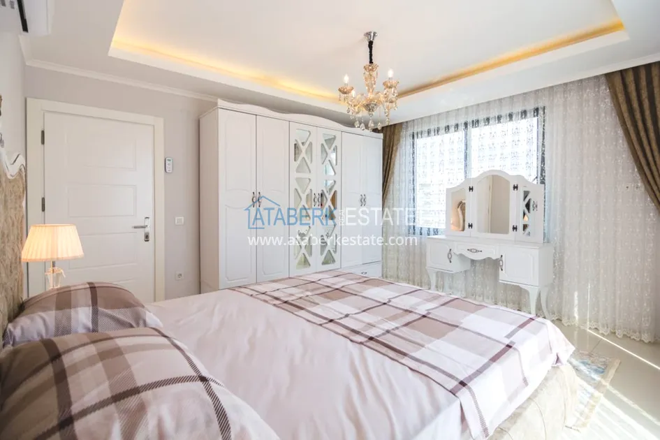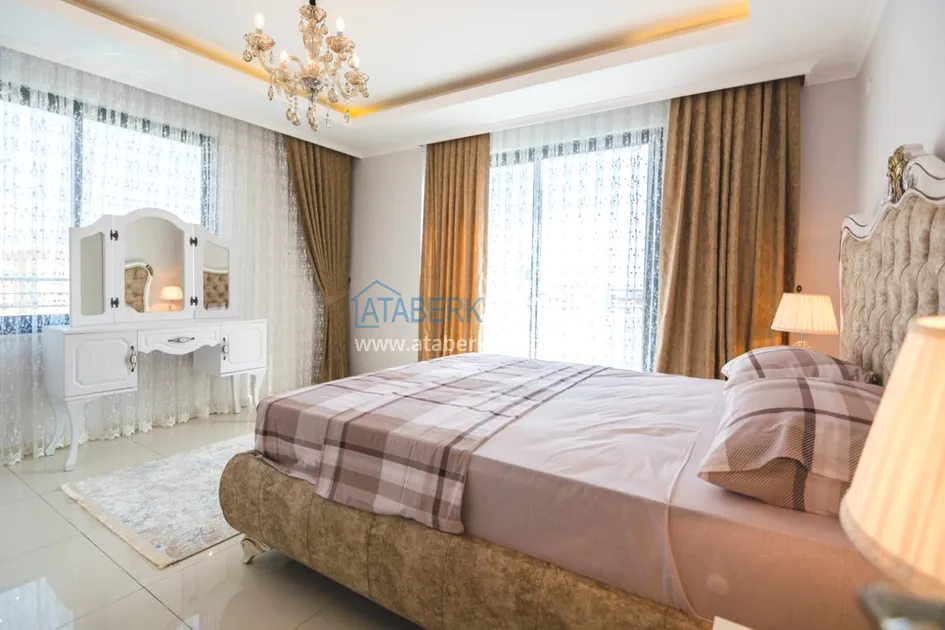Duplex layout 3+1, total area 200 m2, 3 bedrooms on 2 levels, a living room combined with an American kitchen, 4 bathrooms, a balcony and a large terrace with a beautiful view of the sea and the city. The price includes all furniture and household appliances, as in the photo.