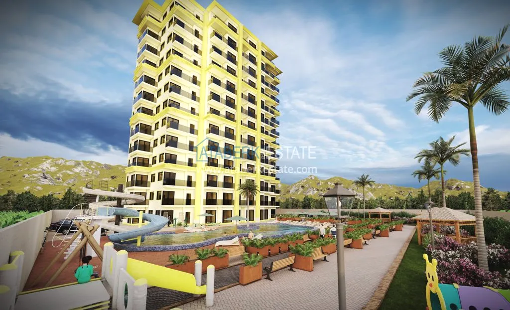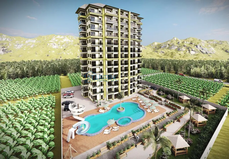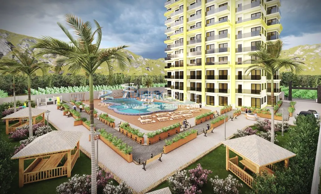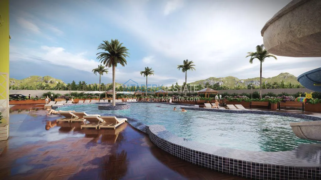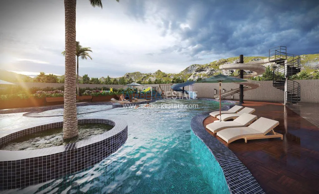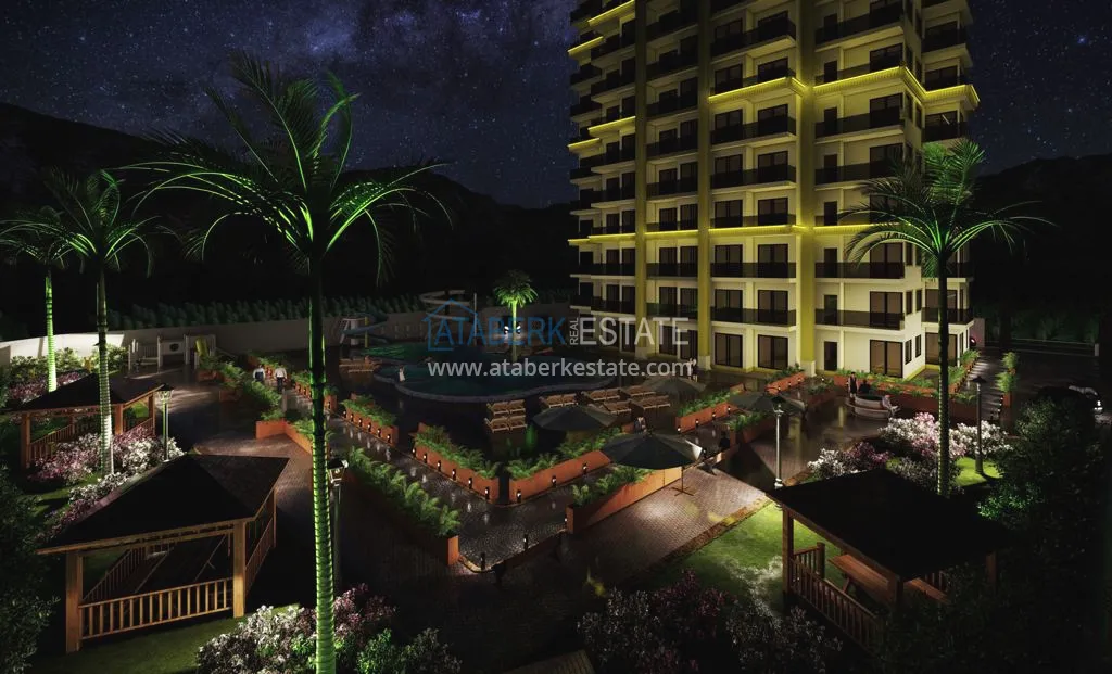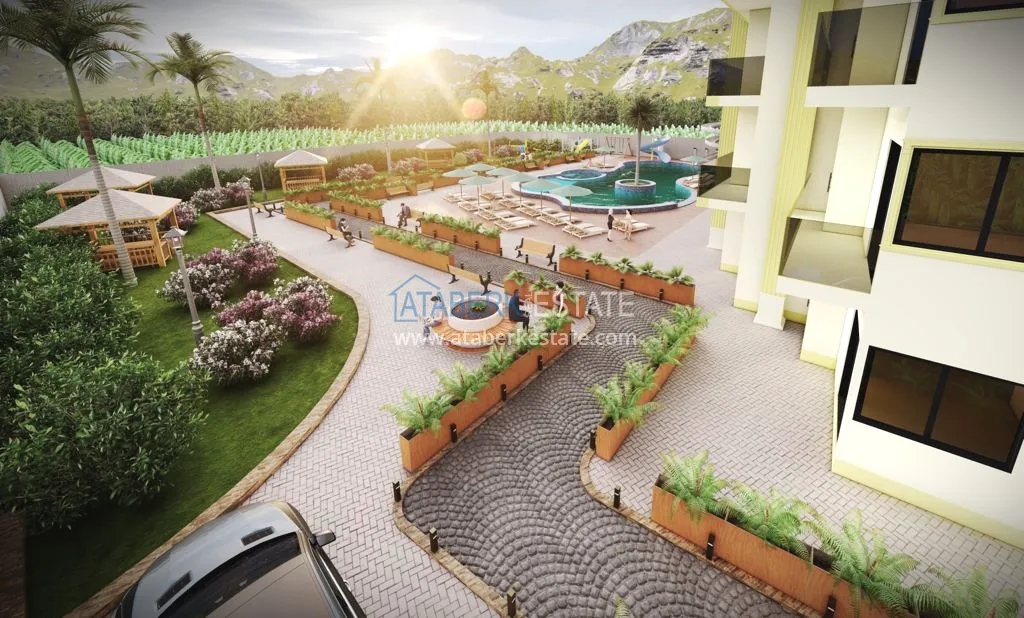 In the resort area of Alanya - Mahmutlar, a new modern comfort-class residential complex is being built, combining high quality construction and modern elegant design, with a self-sufficient internal infrastructure and a very convenient location - some distance from the noisy central streets of the area, on a hill, surrounded magical nature with clean mountain air. The Mediterranean coast is 1 km away.