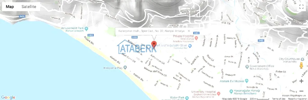 Ataberk Estate presents a new apartment for rent in a complex built in 2015. The apartment is located in the heart of the city in 5-10 minutes walk to the famous Cleopatra beach.