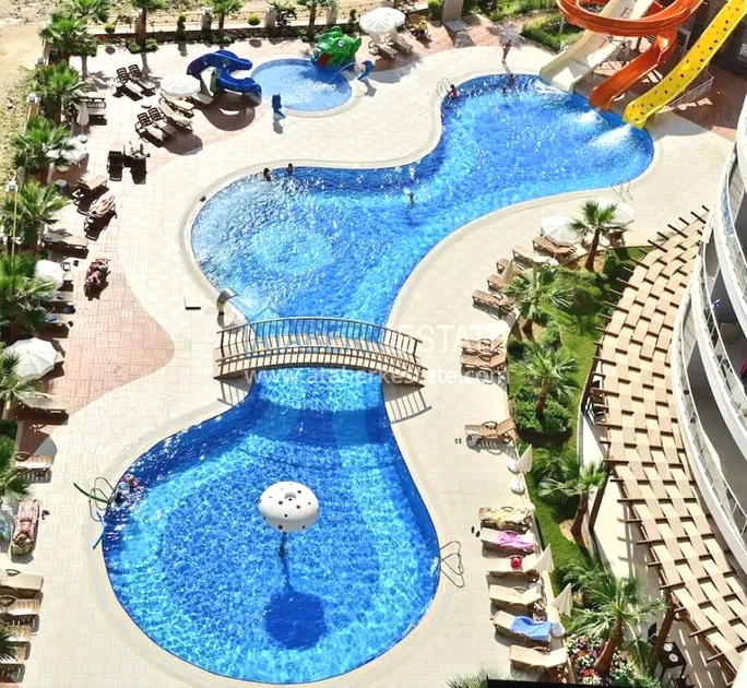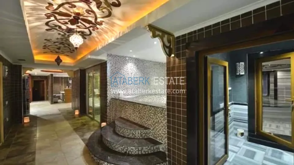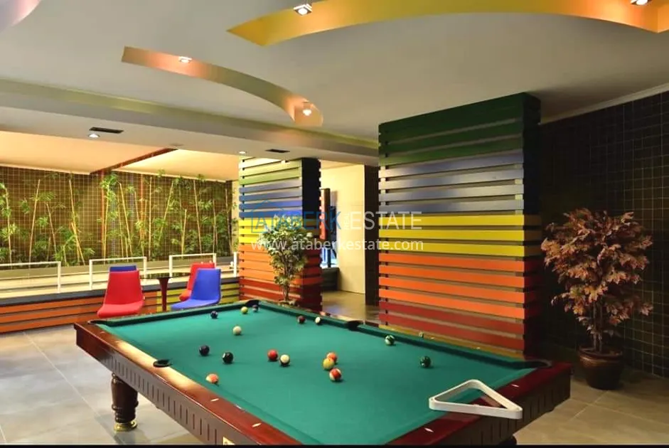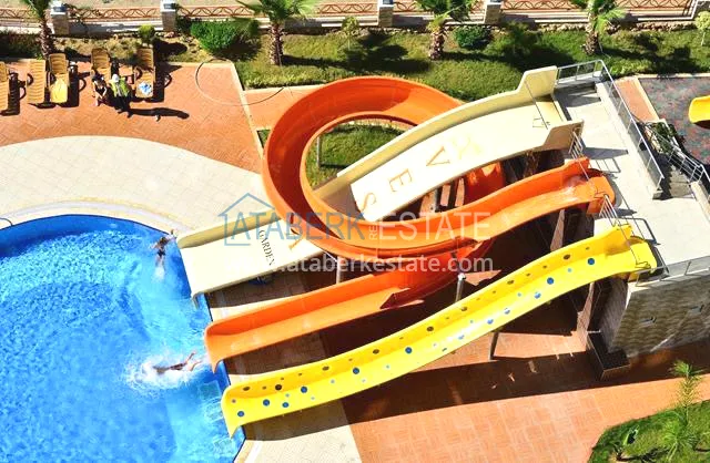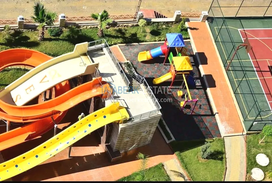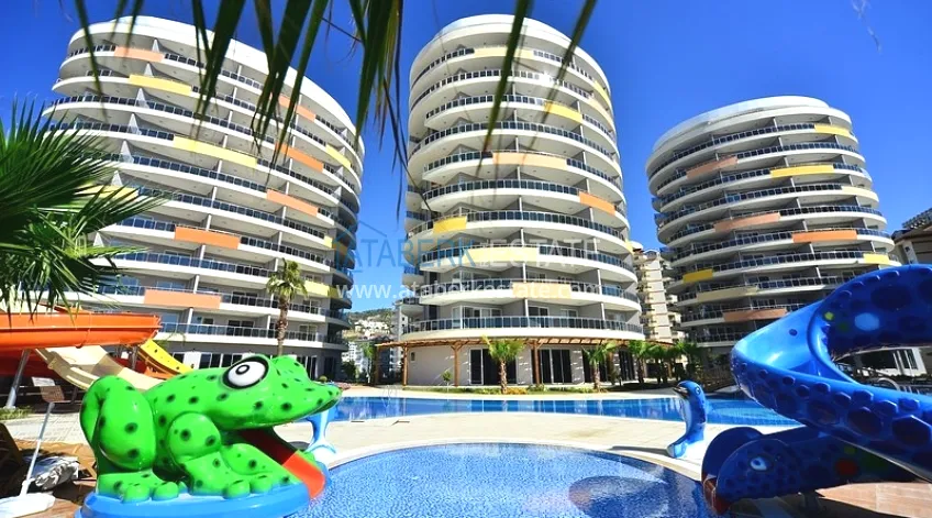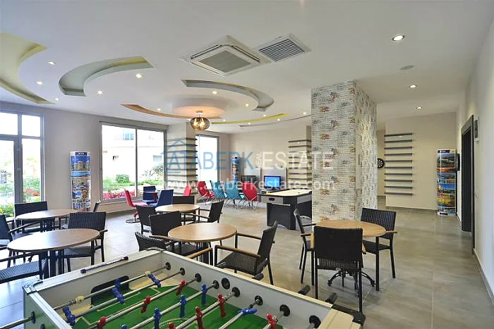 The residence consists of four 9-storey blocks and has a closed protected area with developed internal infrastructure. You will always have the opportunity to fully relax and unwind without even leaving the complex. The residential complex is located 800 meters from the beach, it is about 10-12 minutes by foot. The central part of Alanya is about 500 meters away. The area is quite quiet and comfortable, but at the same time within walking distance there are numerous shops, sports and leisure facilities, many cafes and restaurants for every taste and budget, and there are excellent swing parks for families with children.