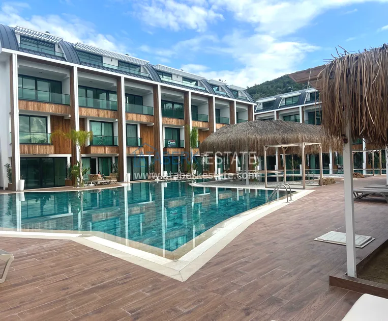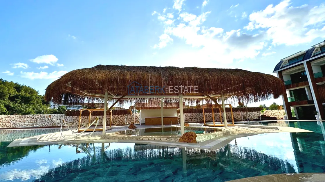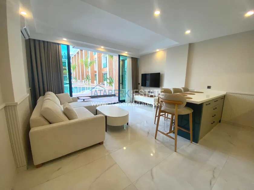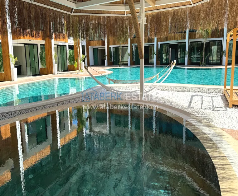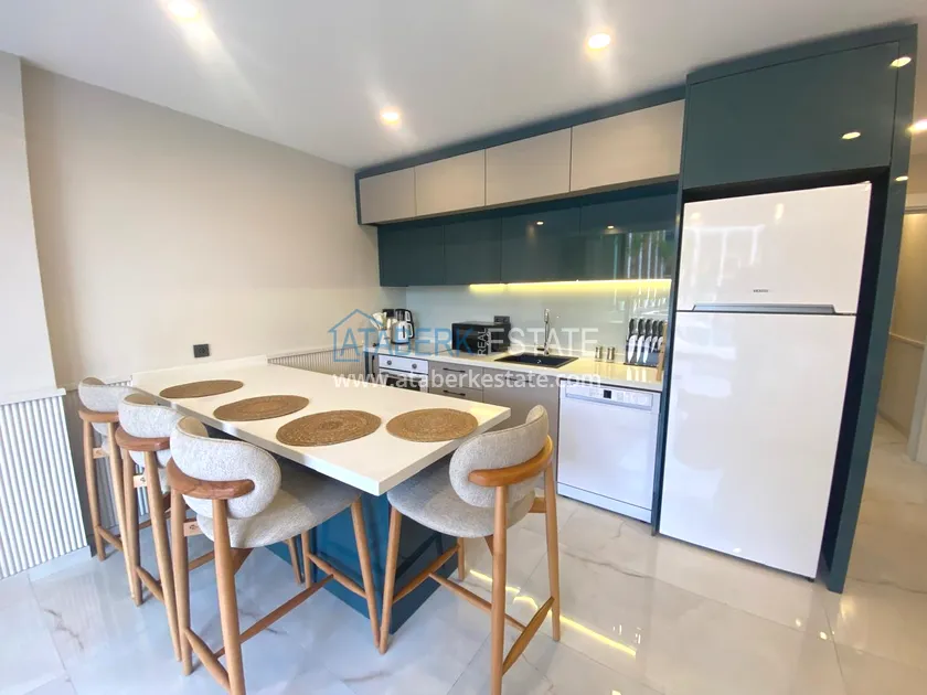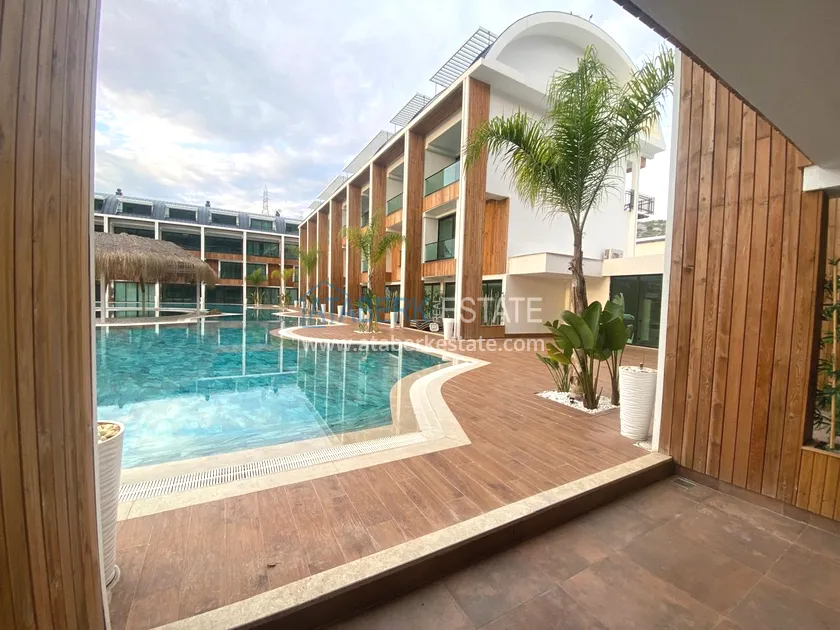 We offer a 2+1 duplex apartment located on floors 1-2. The overall concept of the space is designed for a comfortable life: a living room with an open-plan kitchen, two cozy bedrooms, three bathrooms, and one balcony. The first level provides access from the salon to an open terrace that looks out over the pool and smoothly turns into a relaxation area by the water - in fact, this expands the living space and creates the atmosphere of your own lounge corner. The apartment is fully furnished and ready to move in.