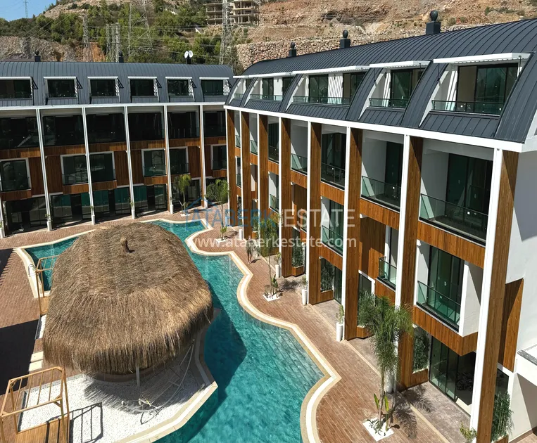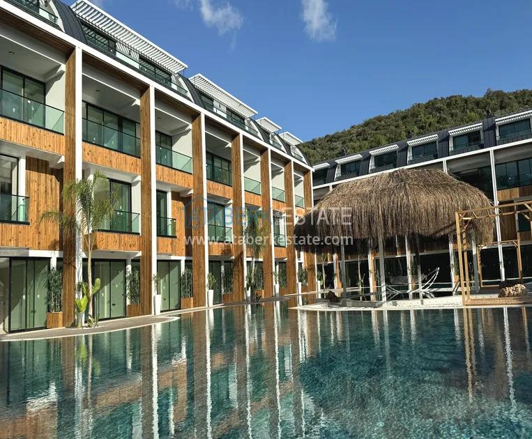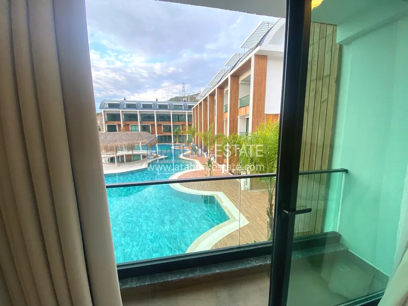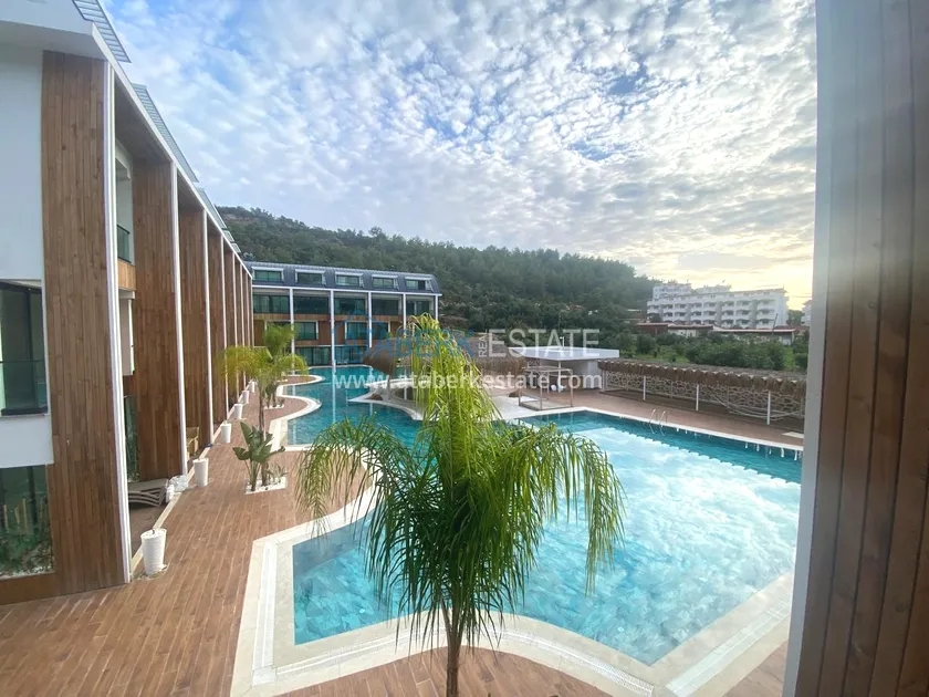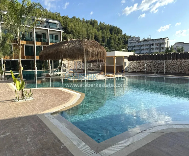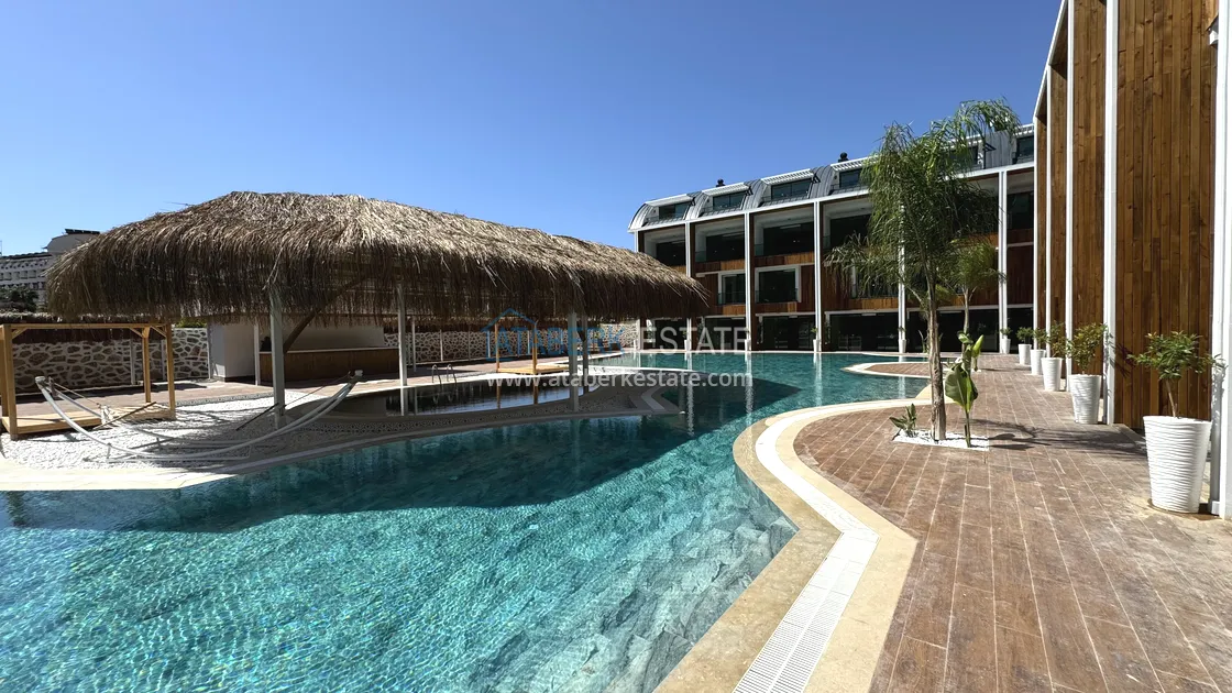 We offer a 2+1 duplex apartment located on floors 1-2. The overall concept of the space is designed for a comfortable life: a living room with an open-plan kitchen, two cozy bedrooms, three bathrooms, and one balcony. The first level provides access from the salon to an open terrace that looks out over the pool and smoothly turns into a relaxation area by the water - in fact, this expands the living space and creates the atmosphere of your own lounge corner. The apartment is fully furnished and ready to move in.