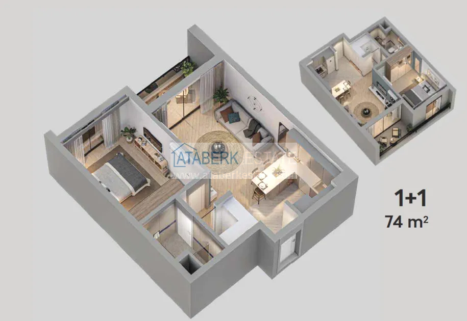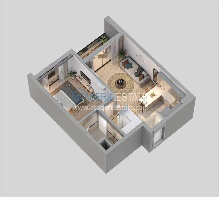 Modern elegant design, very convenient location, reliable and trusted construction company. The complex is represented by one 9-storey block and a closed private territory, and a diverse internal infrastructure will not let anyone get bored. The Mediterranean coast and the sandy beaches of Lara are 2.6 km away, the city center is 12 km away, there are supermarkets and antonovka buses within walking distance, the Terracity shopping center is a 15-minute drive away.