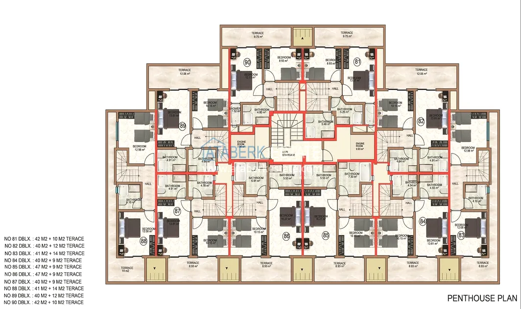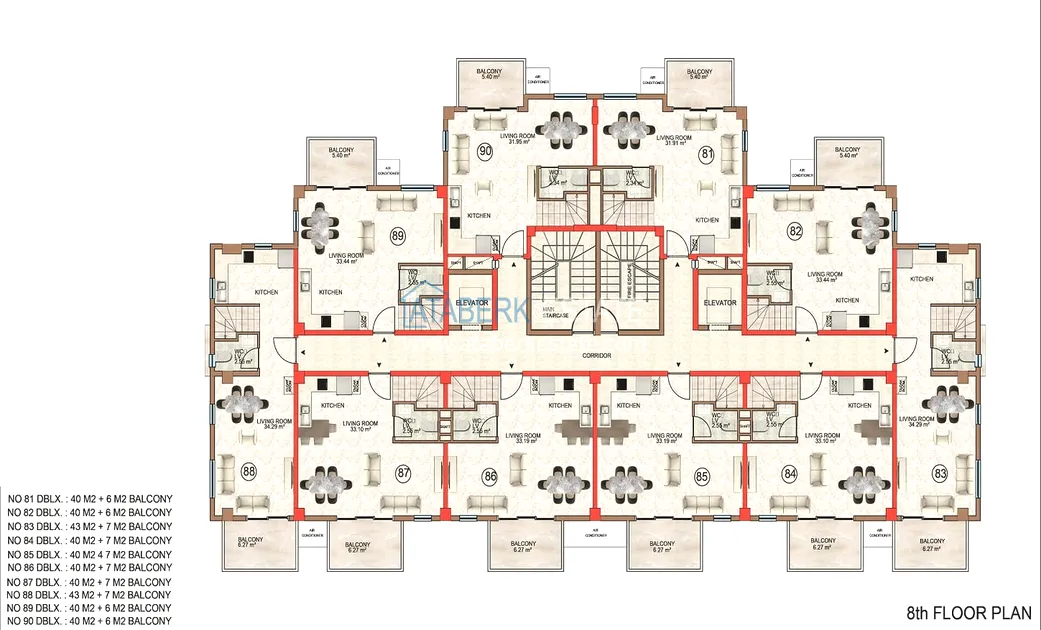 The complex is located 900 meters from the popular sandy Incekum beach. The residential complex is built on a plot of 3,694 m2 and includes one 10-story block with 90 apartments. There is also a closed landscaped area and an excellent range of services.