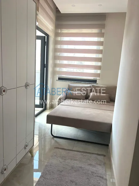The residence, which consists of two blocks, has a closed area with a developed internal infrastructure designed for comfort and relaxation. Aydat is 1,500 lira per month. The famous Cleopatra Beach promenade is just a 5-minute walk away, and all the necessary urban infrastructure facilities are nearby.