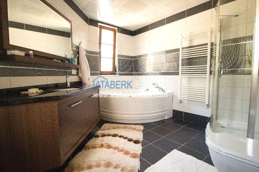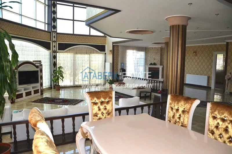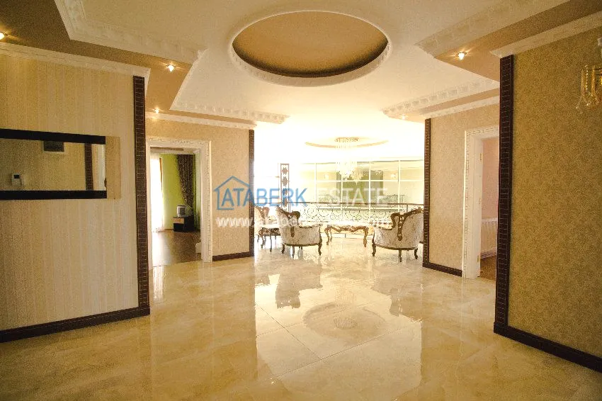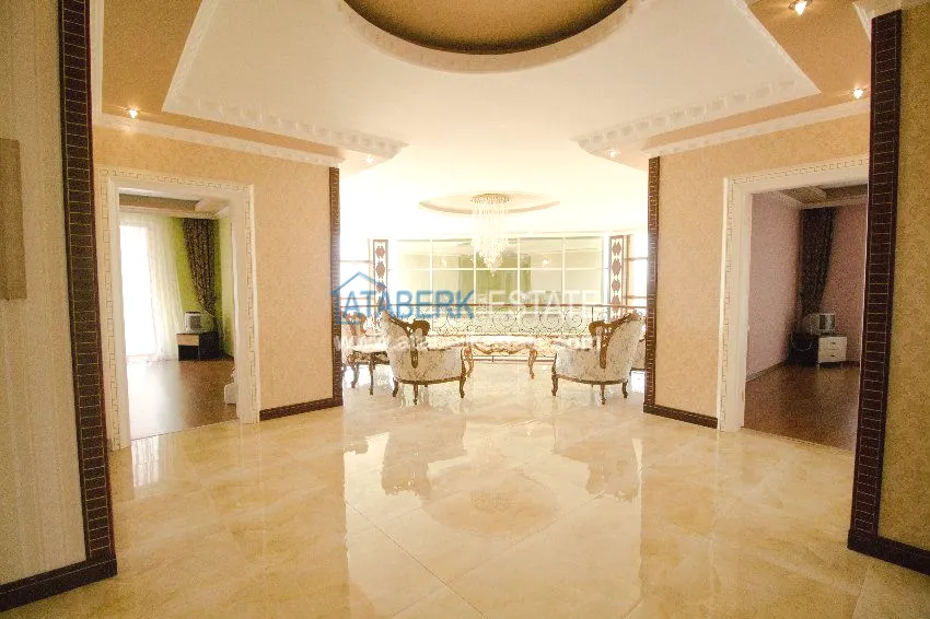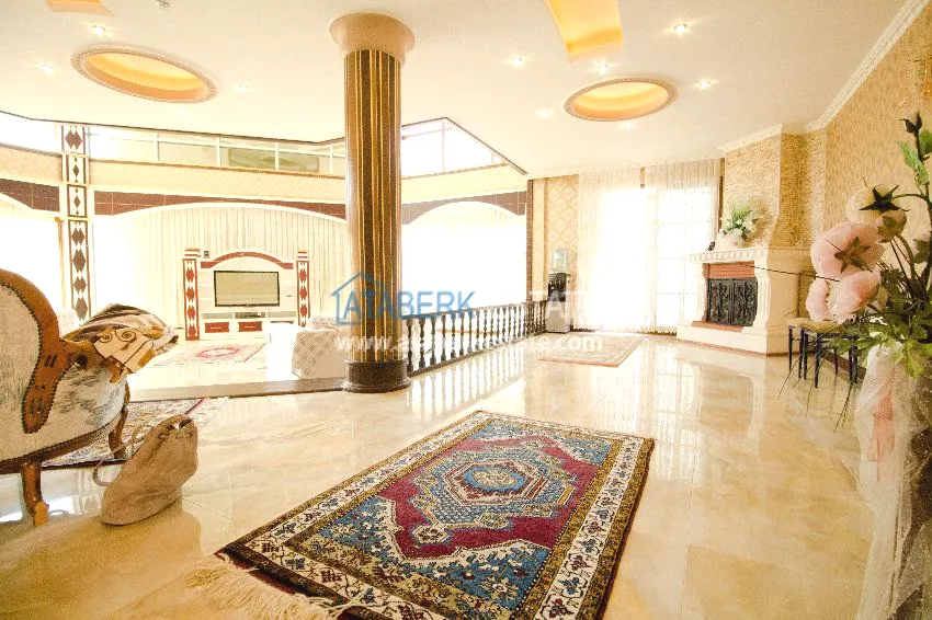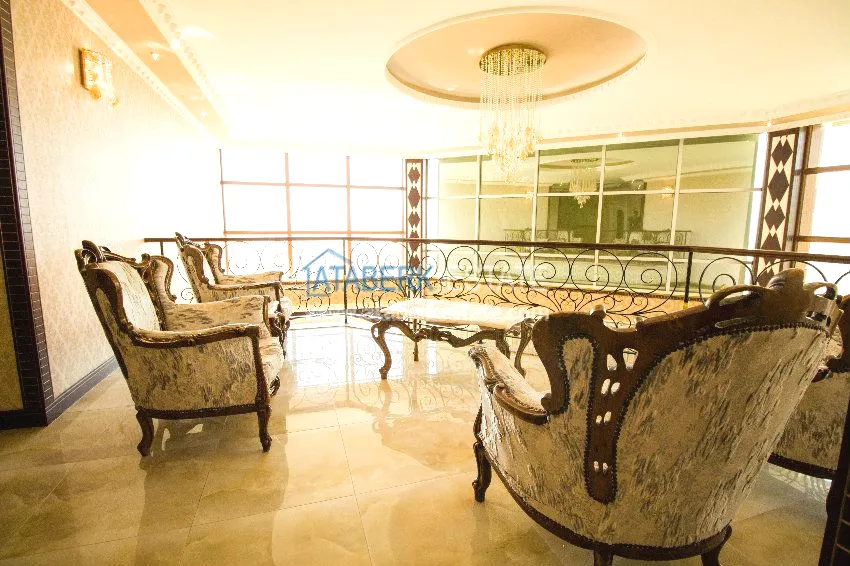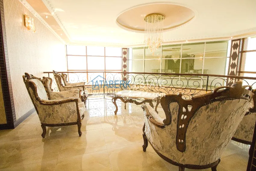 We present to your attention a private ultra-luxury villa located in the center of the city, but at the same time having a large fenced area, separated from neighbors and outsiders. The villa has three floors on which there are six large bedrooms, six bathrooms with shower cabins and bathtubs with hydromassage, hammam (Turkish bath), a spacious living room, kitchen area and an elevator. The villa has several terraces, one of which has a Jacuzzi. All terraces, windows of the villas have views of the Mediterranean Sea and the Taurus Mountains.