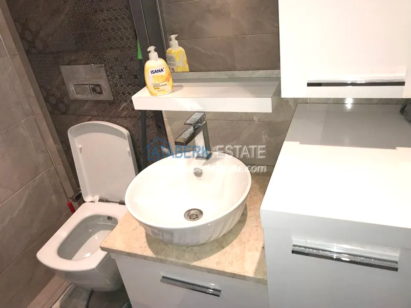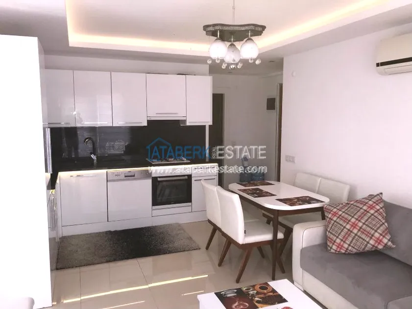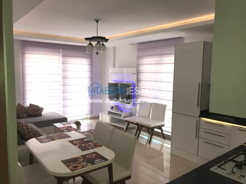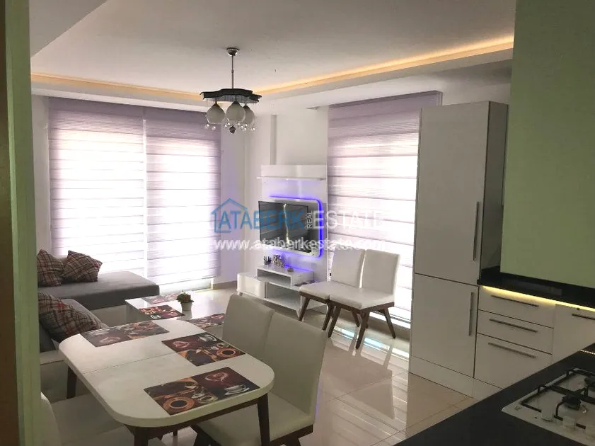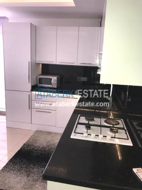 The 1+1 apartment with an area of 65 sq.m. is located on the 3rd floor of a residential building. The price of the apartment includes all the furniture and a full set of home appliances as in the photo, a built-in kitchen with a black granite countertop and a fully equipped bathroom with quality fixtures, electric water heater, glass shower and heated floor, decorative ceiling lights in all rooms, spotlights in the living room and air conditioning in each room.