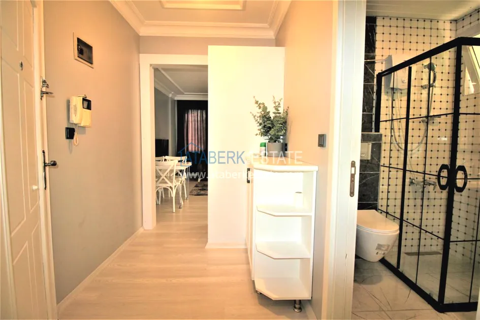 1 + 1 apartments, located on the 1st and 3rd floors, are oriented to the south-west and south-east, the total area is 60 sq. m,. It has one bedroom, living room, open kitchen, bathroom, also has a corridor and a balcony. The view from the window is open, which is a plus for dense buildings in the center of Alanya. The apartments are for sale with a full set of upholstered and cabinet furniture, as well as household appliances, air conditioners and fully equipped bathrooms are installed in each room.