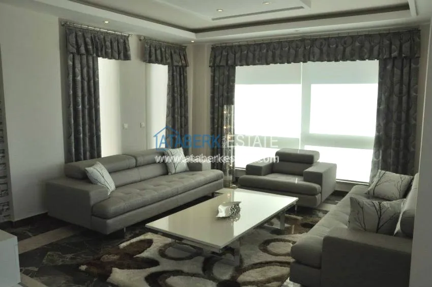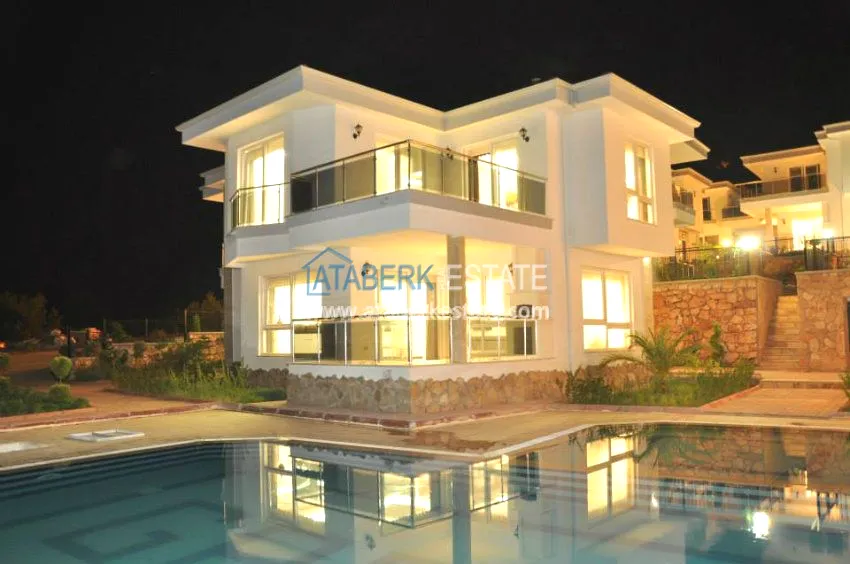 The villa has an area of 200 sq. m. On the ground floor there is a kitchen, a dining room, a living room, a toilet, a terrace and a barbecue. On the second floor there is a bedroom, a children's room, a guest room, a sauna, 2 bathrooms and an open terrace, overlooking the center of Alanya and the Mediterranean sea.