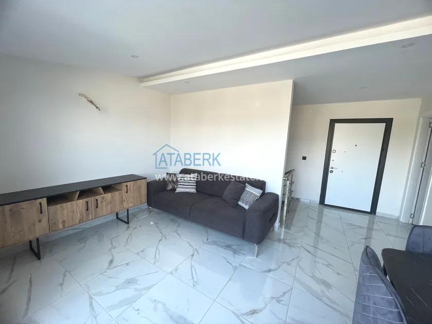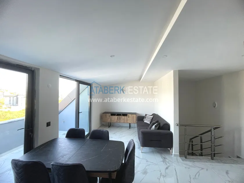 The proposed 2+1 property is located on the upper two floors. The layout includes: a living room combined with an open-plan kitchen, two bedrooms, two bathrooms and two balconies. The apartment is being sold in the form shown in the photo.