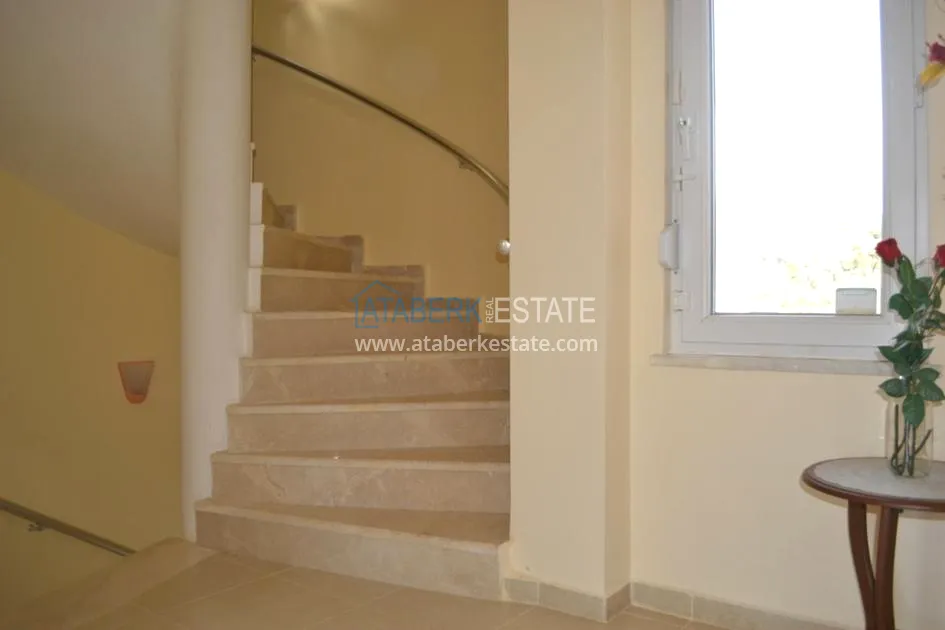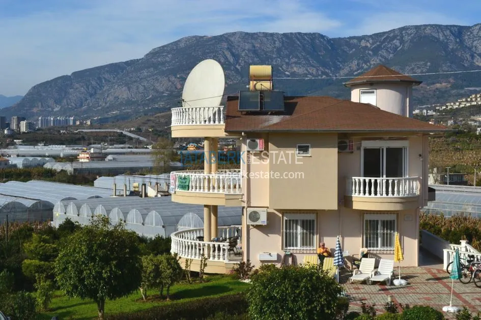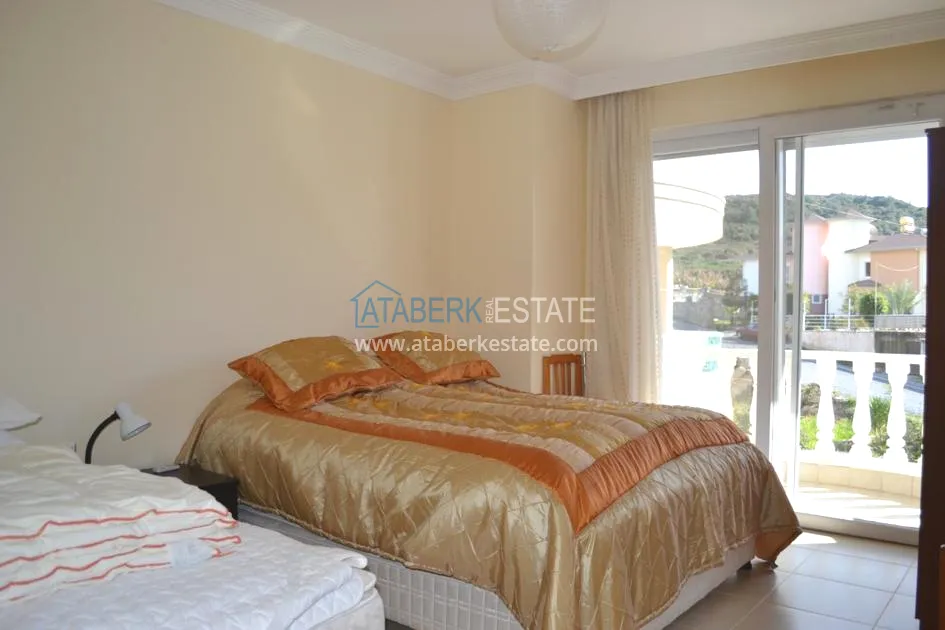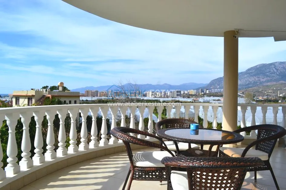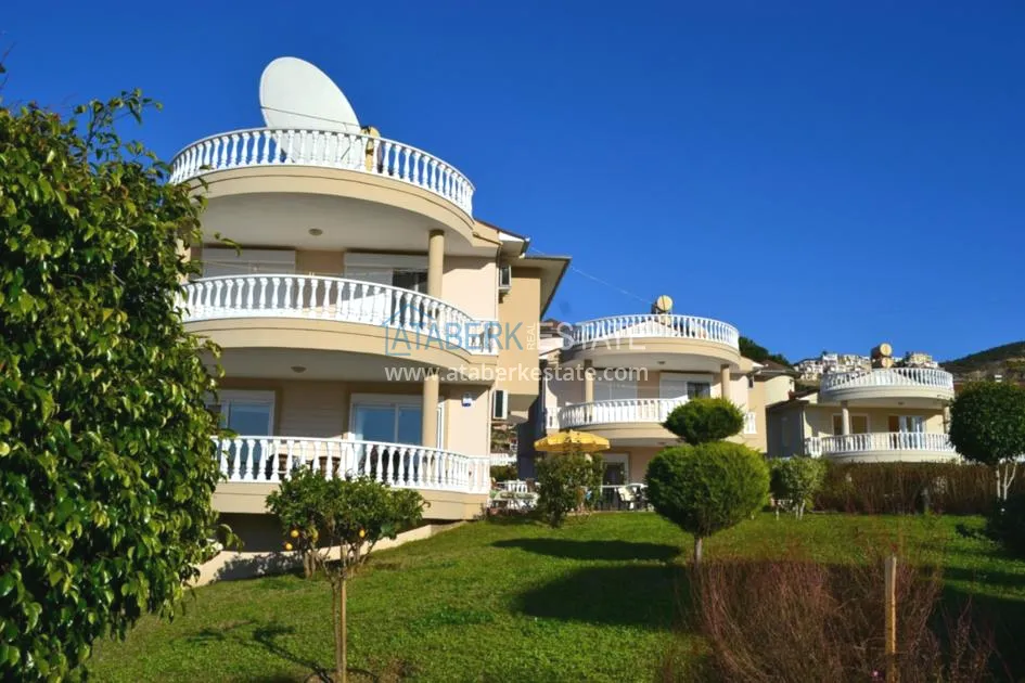 In a small well-kept complex there is a villa from the owner in excellent condition. The villa is located in a residential complex, just 800 meters from the Mediterranean sea within walking distance from shops, restaurants and all the necessary infrastructure. The villa offers a picturesque view of the nature and mountains of Alanya and has 4 bedrooms, 2 halls, a beautiful terrace on the top floor. The house has a security system.