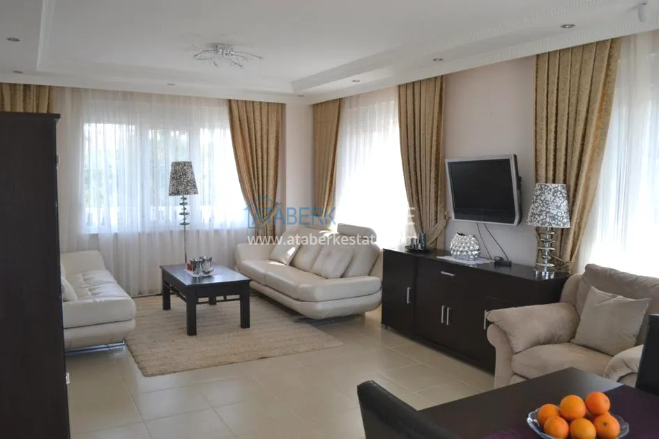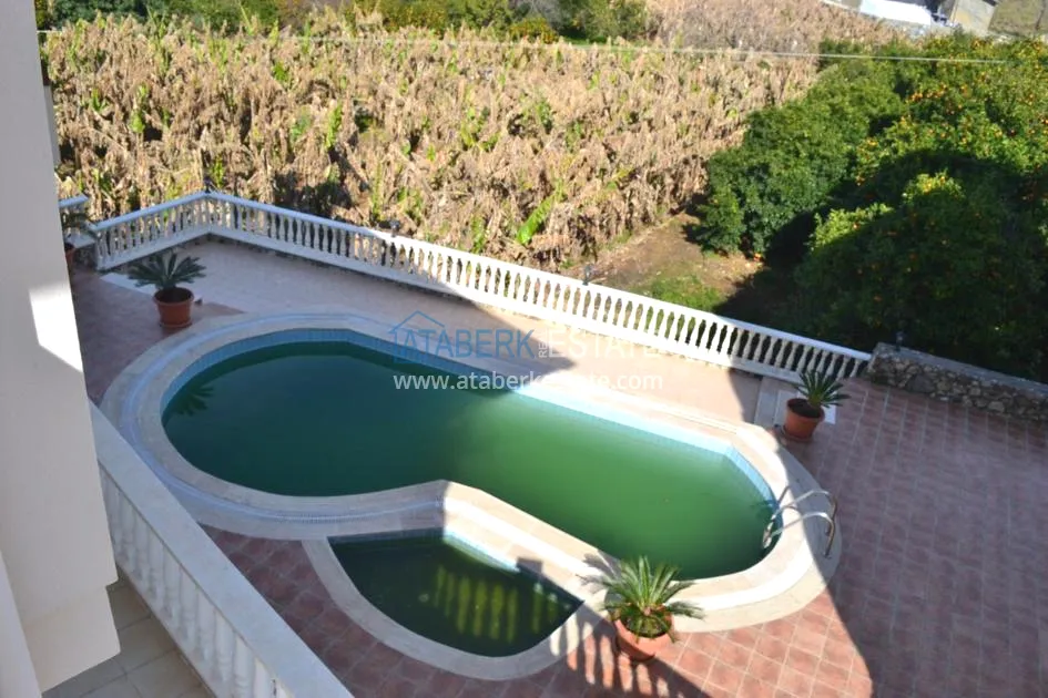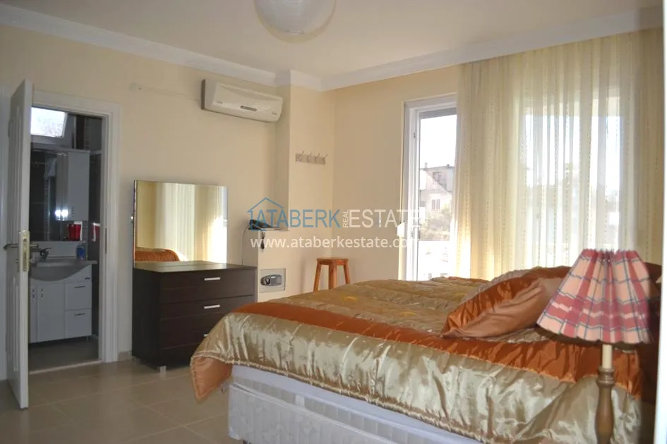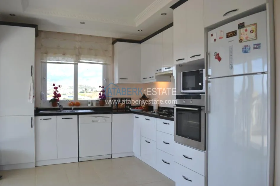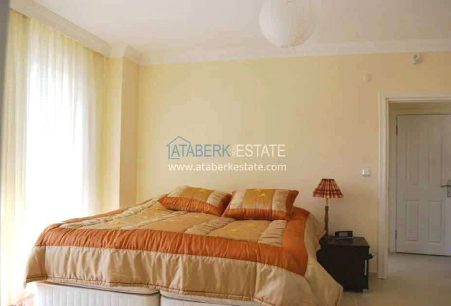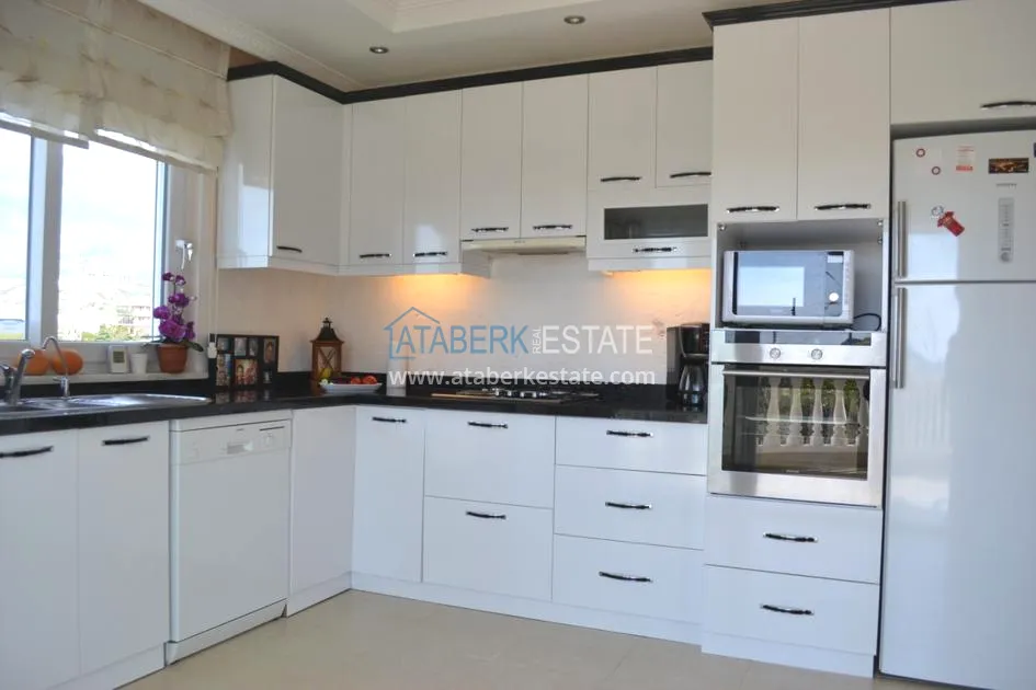 In a small well-kept complex there is a villa from the owner in excellent condition. The villa is located in a residential complex, just 800 meters from the Mediterranean sea within walking distance from shops, restaurants and all the necessary infrastructure. The villa offers a picturesque view of the nature and mountains of Alanya and has 4 bedrooms, 2 halls, a beautiful terrace on the top floor. The house has a security system.