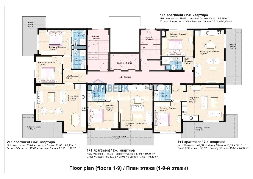 В комплексе для Вас разные варианты апартаментов - как для маленьких так и для больших семей.