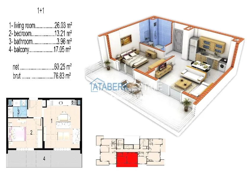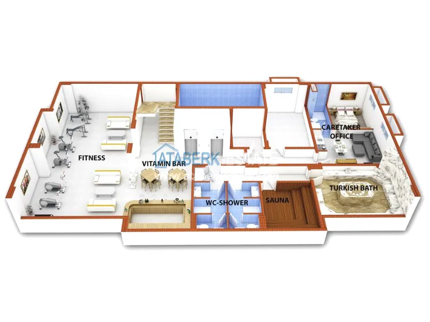 В комплексе есть все для комфортной и активной жизни: тренажерный зал, сауна, турецкая баня, детский и взрослый бассейн с горкой, игровая площадка, ресторан и витамин-бар, зона отдыха с шезлонгами и беседкой, зона барбекю, парковка, ресепшен. К Вашим услугам русскоговорящий персонал, который поможет в решении всех вопросов!