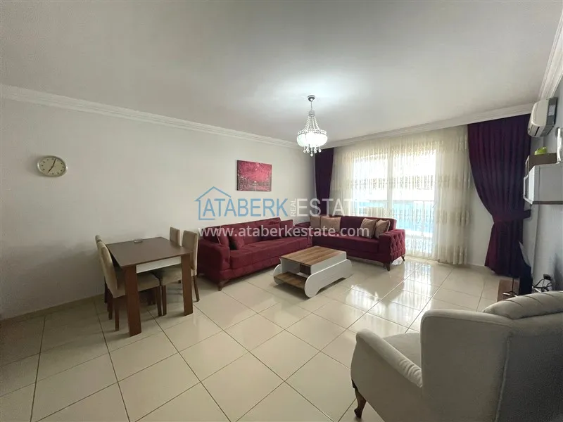 The 2+1 apartments are located on the ground floor and are south-facing, which provides maximum daylight. The total area is 110 m², where a living room with an open-plan kitchen, two cozy bedrooms, a spacious bathroom, an entrance hall and a balcony with side mountain views are thoughtfully arranged. The price of the apartment includes all furniture and household appliances shown in the photo.