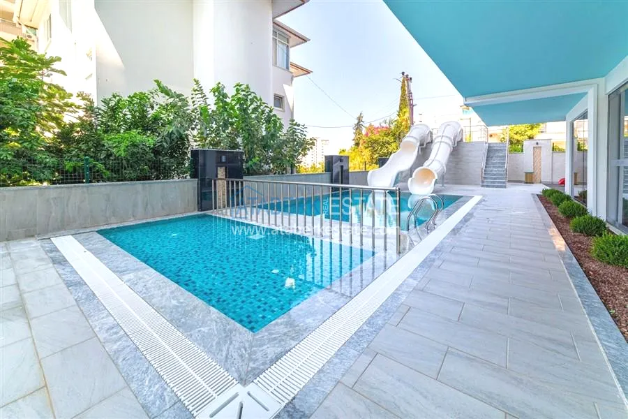The complex is a modern residential block with a well-groomed area and developed infrastructure, located just 800 meters from the Mediterranean coast. Shops, cafes, markets and public transport stops are within walking distance.