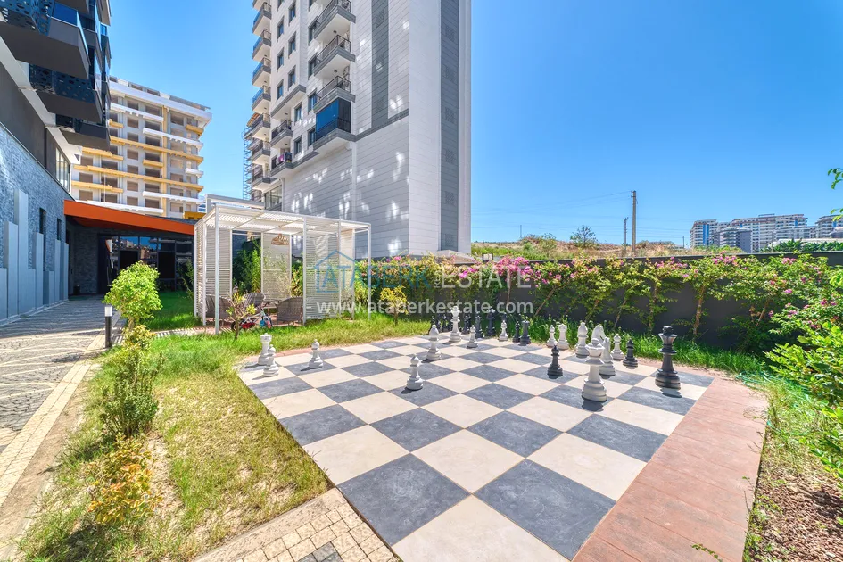 The apartments are located in a premium residential complex that combines comfort, safety and style. The complex consists of one 12-storey block and has a protected private area and a rich infrastructure for recreation and living. Aydat is only 50 euros per month. The residential complex is located in the very center of Mahmutlar: 100 meters from Ataturk Street, 400 meters from Barbarossa Avenue and only 650 meters from the Mediterranean Sea. Farmer's fairs take place next to the house and are held every Saturday 150 metres away. Also, the center of Alanya can be reached in just 20 minutes (11 km).