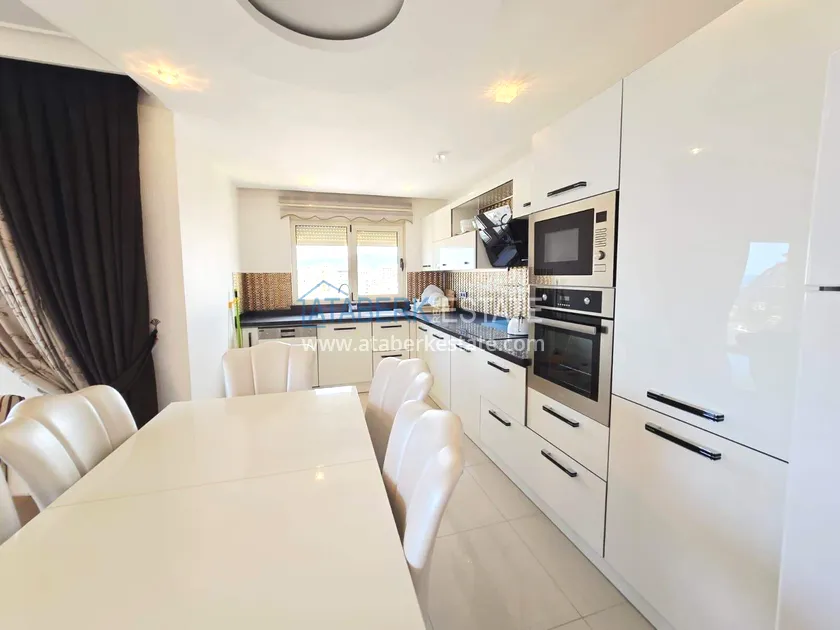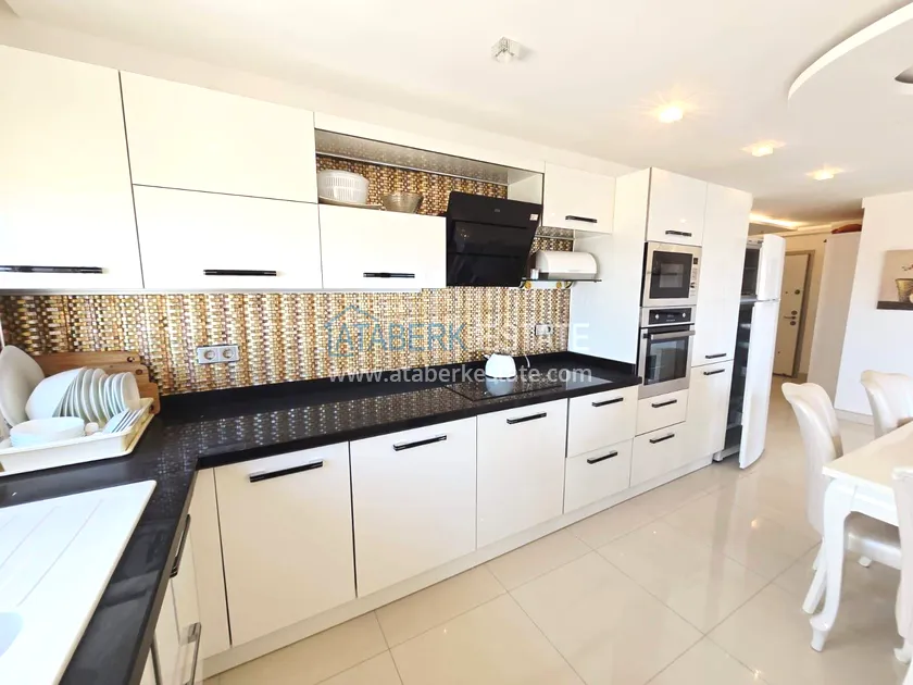The2+1 apartment is located on the 8th floor and includes a living room with an American-style kitchen, two bedrooms, two bathrooms (one with a bath and the other with a shower) and two large balconies. The total area is 139 m². The property is fully furnished and ready to move in. Panoramic sea views can be enjoyed from the main areas of the apartment, creating a sense of space and enhancing the quality of everyday life.