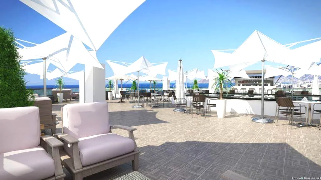 The apartments we offer are located in a secure residential complex with its own infrastructure. The residence consists of one block, the highlight is an open viewing lounge area on the roof of the house. Aydat - 200 lira per month. Within walking distance from the complex you will find supermarkets, chain cafes and restaurants, bakeries, food and clothing stores, park areas, playgrounds, ATMs and bank branches, pharmacies. The Mediterranean coast is 7 minutes walk.