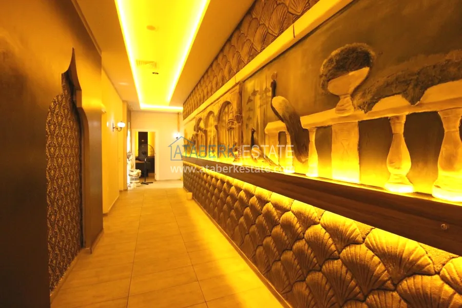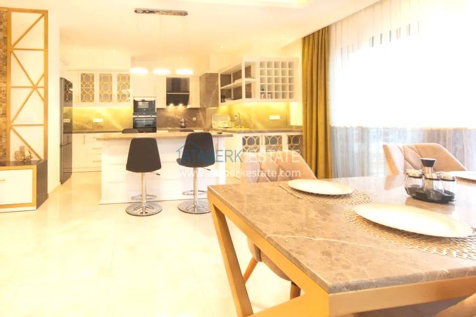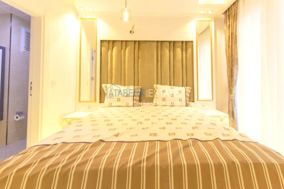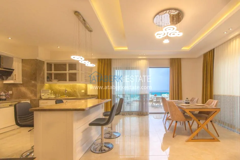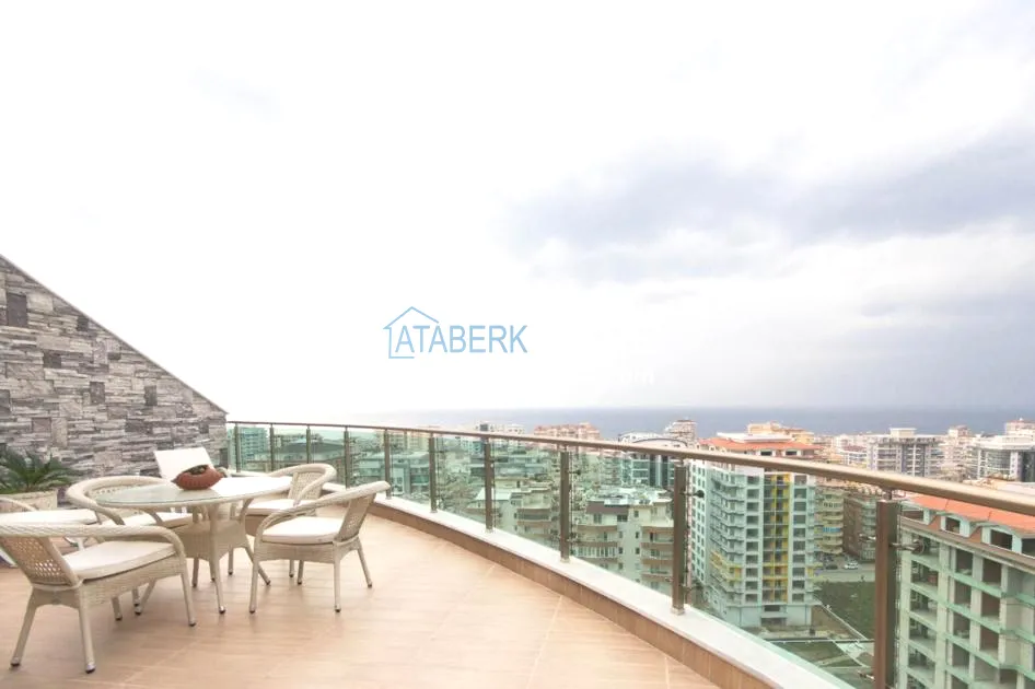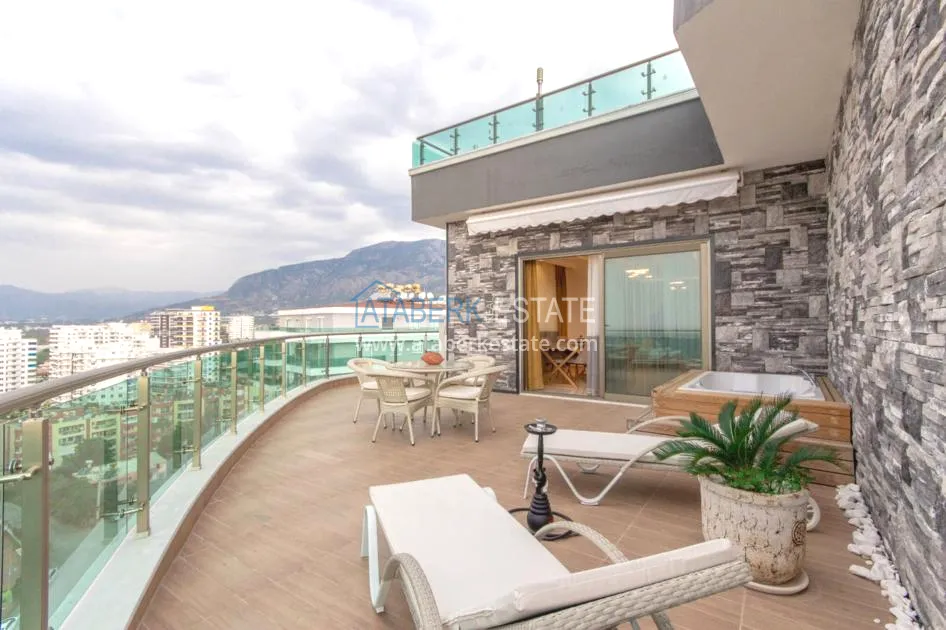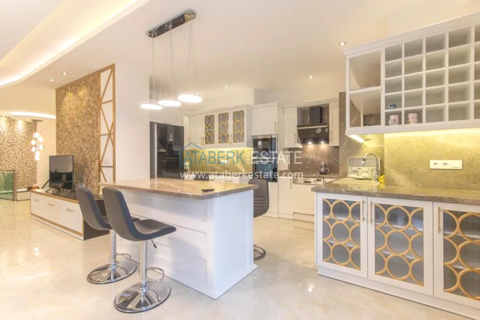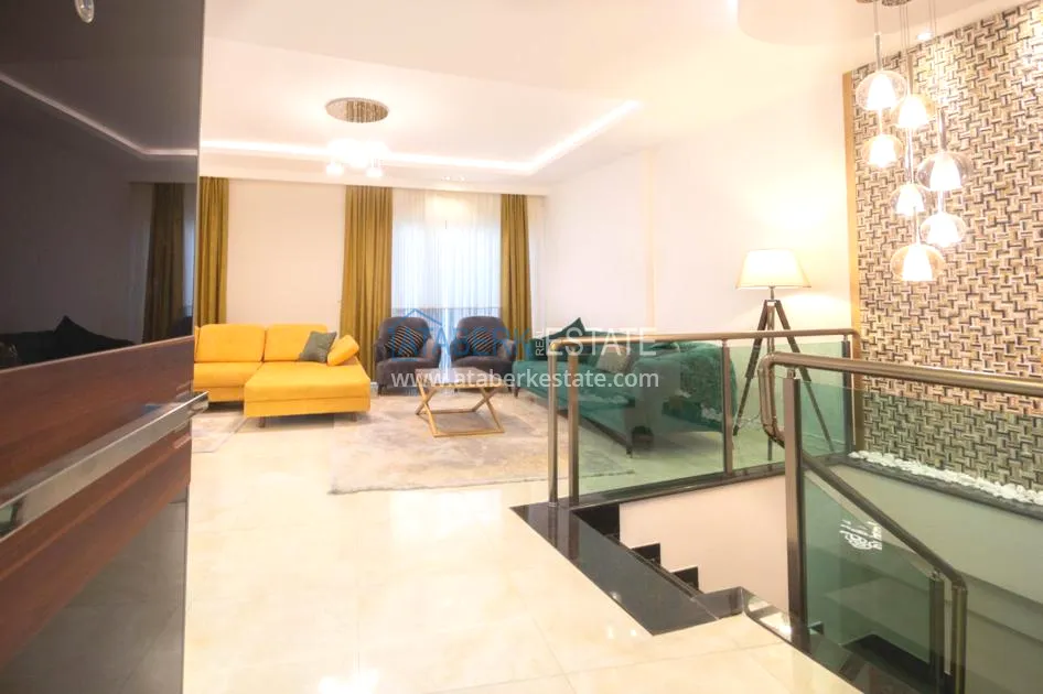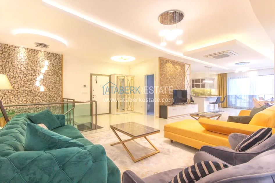 For sale a luxurious furnished duplex apartment with a view, located in a comfortable residential complex, in the coastal region of Alanya.