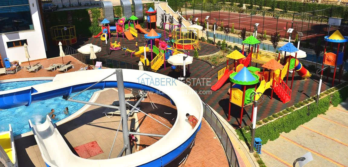 The complex is located on a hill, some distance from the center of the district. The green and well-groomed area of 26,000 m2 has literally everything you could wish for. Consists of 3 residential blocks. The complex provides childcare services - babysitting, shuttle to a private beach and car rental. In fact, this complex is a city within a city. On the territory of the condominium, you can buy everything you need in stores and relax without worry and hustle.