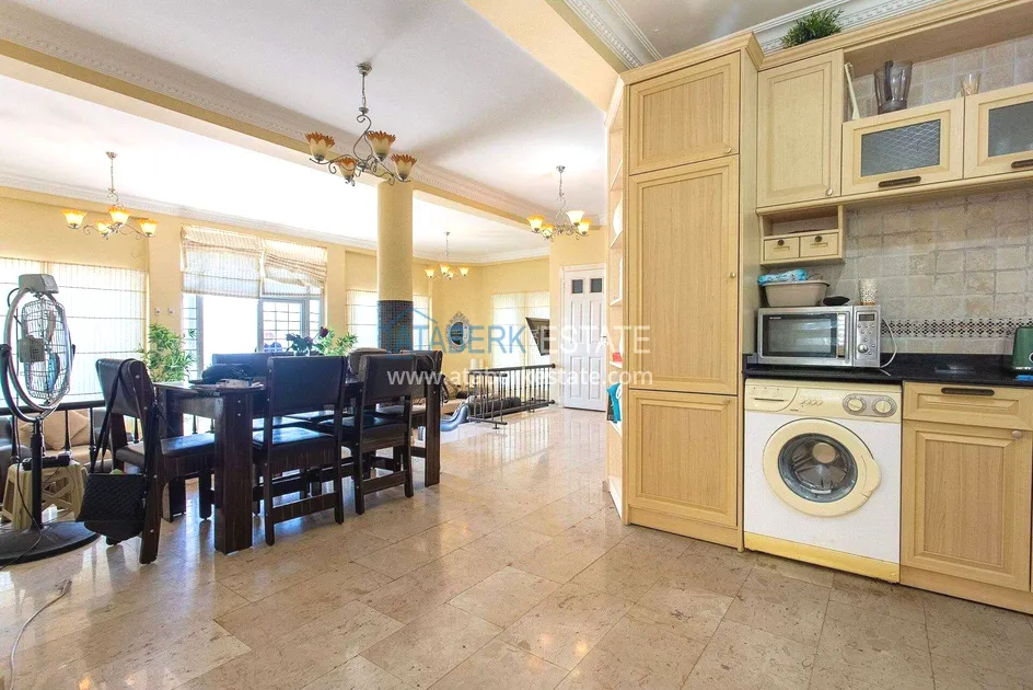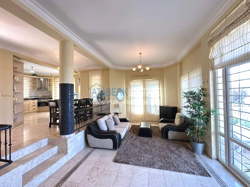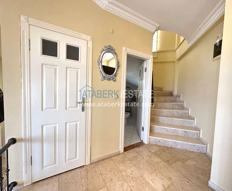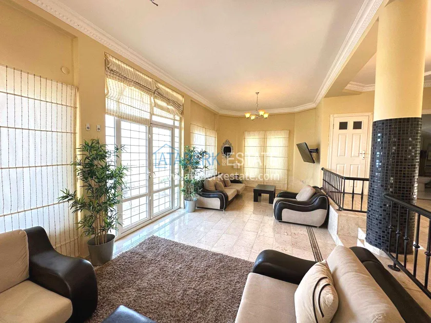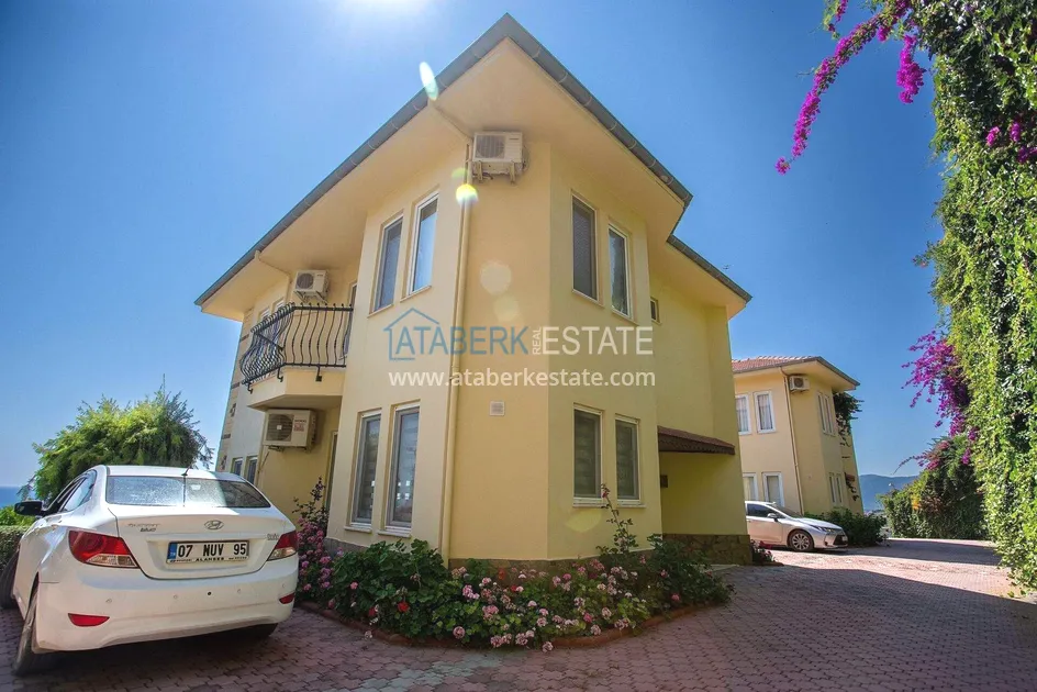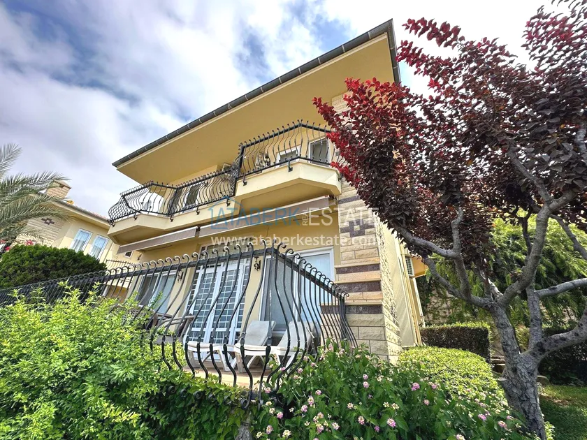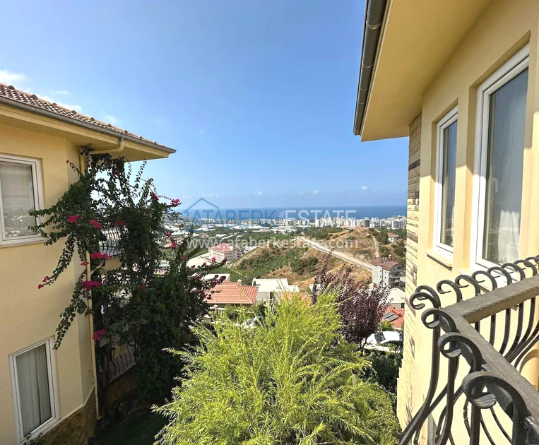 Thistwo-story 4+1 villa with a total area of 255 m² is located on its own 350 m² plot and is offered for sale fully furnished. The house is designed for a comfortable family life and relaxation: it includes a living room, a separate kitchen, four rooms, three bathrooms, and three balconies. An additional advantage is a spacious garden terrace and a private green area, which creates an atmosphere of privacy and allows you to enjoy the warm Mediterranean climate. Due to its elevated location, the villa offers panoramic views of the sea, the city and the surrounding nature, and the orientation of the house provides plenty of natural light throughout