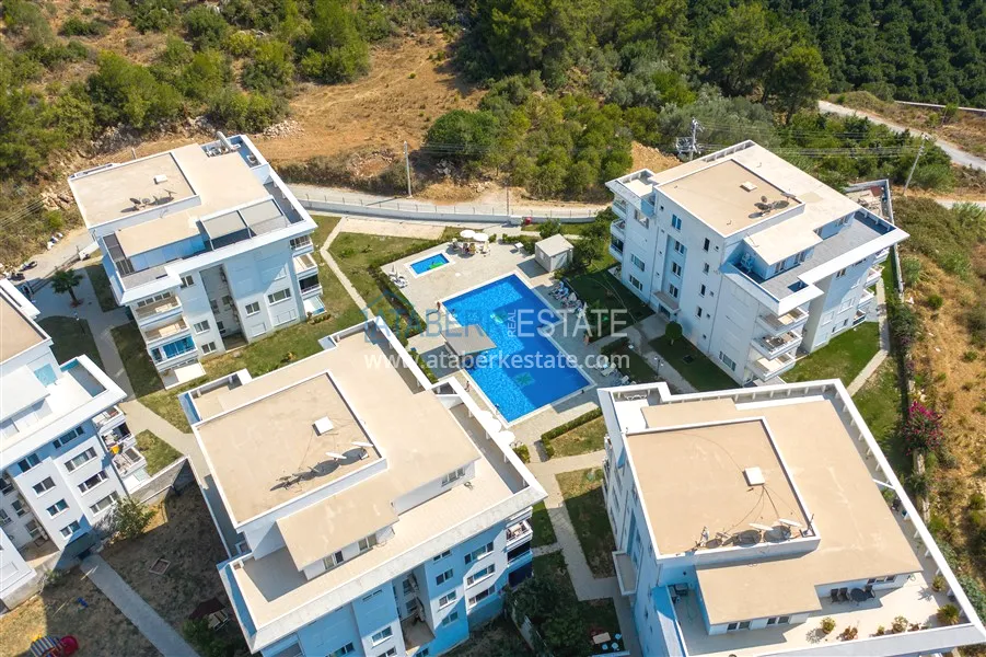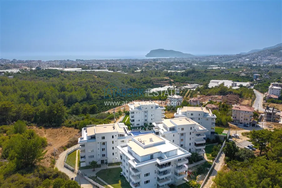 The complex consists of four 5-storey blocks and has a large area with a well-kept garden and its own infrastructure. It is located in the upper part of the Oba district, surrounded by beautiful nature and mountain scenery. The district centre is just 500 metres away and the Mediterranean Sea is 3 km away. Here, silence and fresh air are combined with the proximity of city life.