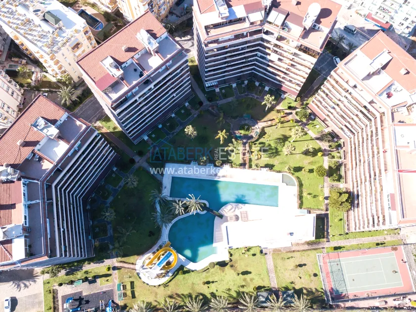The residence is located in the coastal region of Alanya - Tosmur, consists of four 9-storey blocks and a large, well-kept area with rich infrastructure. The Dim-Chay River flows next to the complex, and a wonderful beach is literally a few minutes' walk away. Aidat is 1250 liras per month.