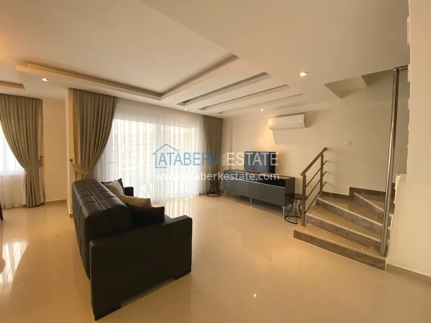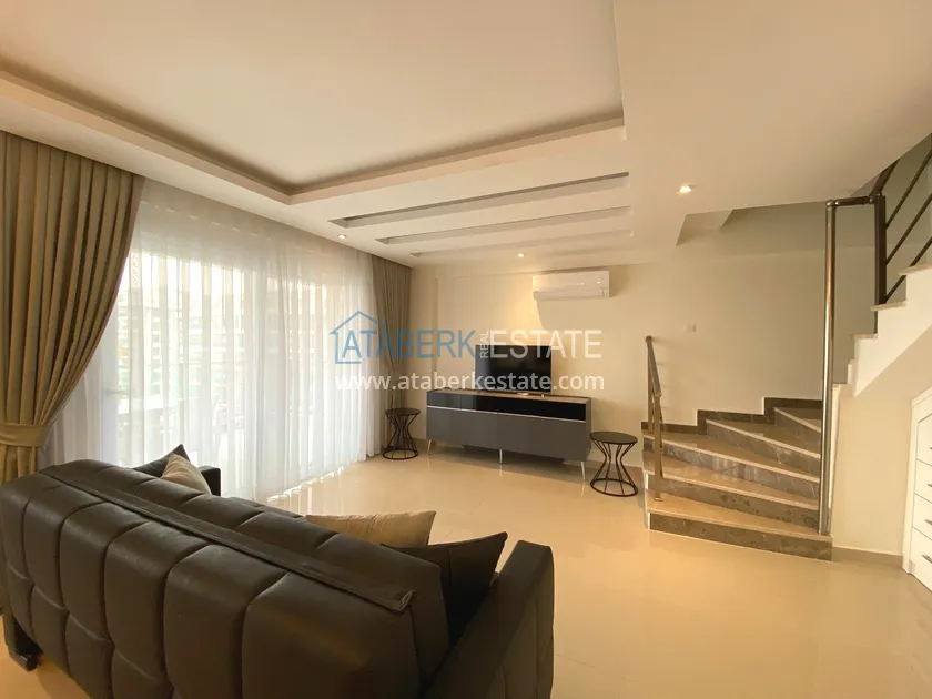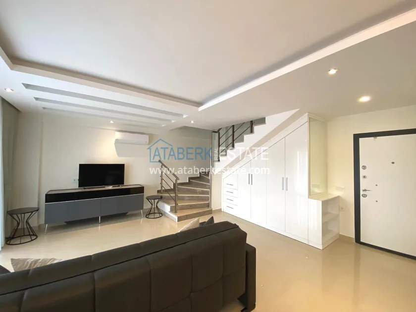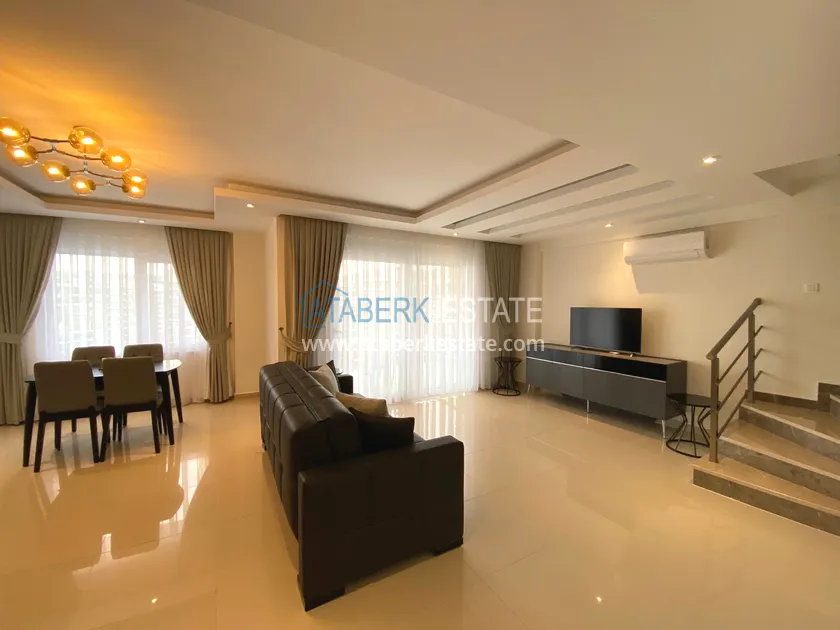 The stylish, cozy fully equipped apartment is located on the upper two floors, 2+1 layout with an area of 110 m2. The ground floor houses: a living room combined with an American-style kitchen with access to a balcony and a bathroom. The second level is a sleeping area. It has 2 bedrooms, a shared bathroom and a balcony. The apartment has furniture and household appliances, as well as necessary household items.