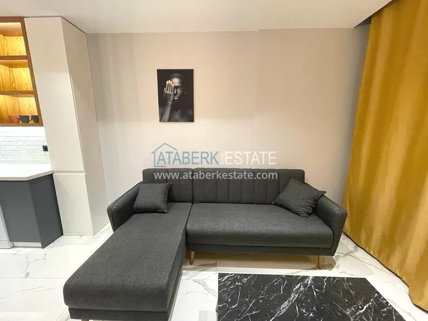 The complex has an adjacent closed area, where many amenities are provided for your comfortable stay. The apartments, located on the 1st floor, have a 1+1 layout — one bedroom, a living room, an American-style kitchen, a bathroom and one balcony with access from all rooms. The apartment is fully equipped and ready to move in. Stylish furniture has been installed, there are necessary appliances, dishes, bedding, and air conditioners.