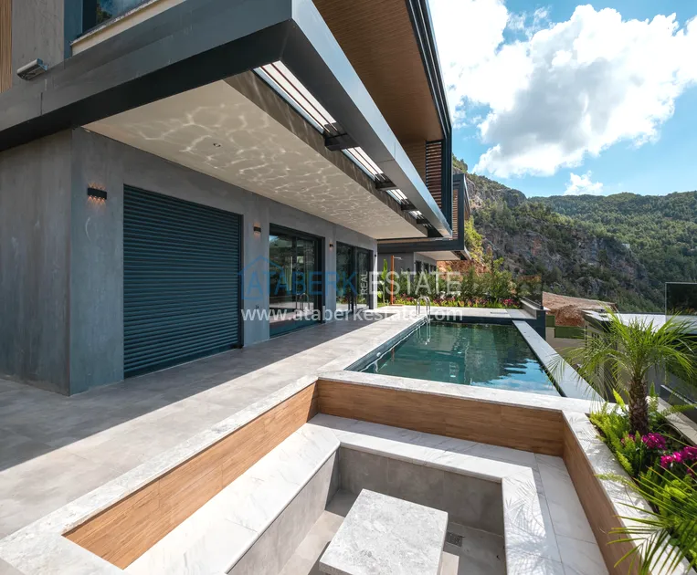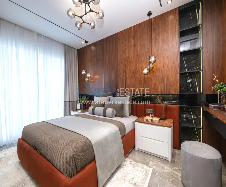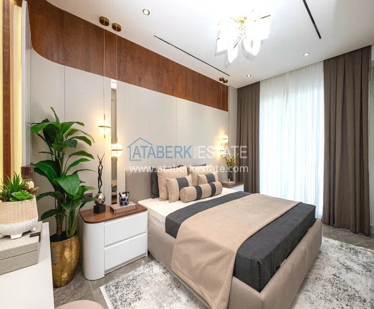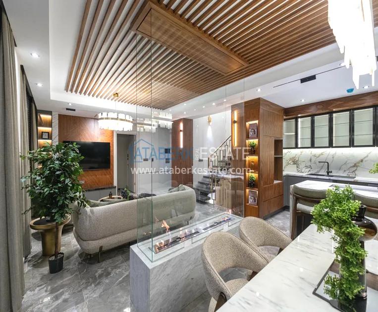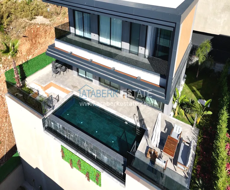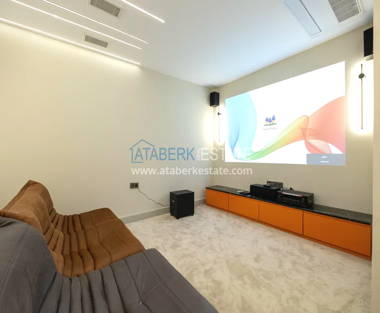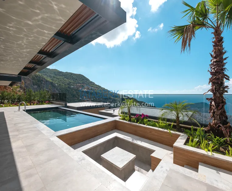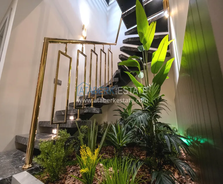 The project will be built on a plot of 2,480 m2. The total construction area is 5,115 m2. You can feel comfort and convenience in every square meter surrounded by pine forests intertwined with nature and frontal panoramic views of Alanya and the sea. The project includes 6 separate three-story villas with an area of 305 m2 and an 8+1 layout, including 4 bedrooms with bathrooms, a living room combined with a kitchen equipped with a modern fireplace, a cinema room, a gym, a sauna, dressing rooms, a warehouse and a technical room. Each villa has its own area from 216 to 292 m2 with its own panoramic infinity pool and a closed garage for 2 cars. The villas will be equipped with a smart home system and a floor heating system in all rooms. An electric generator, a water tank and lightning rods are available.