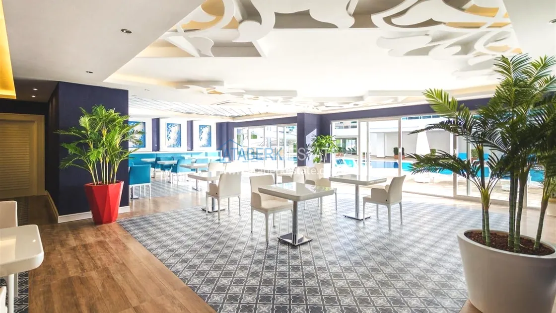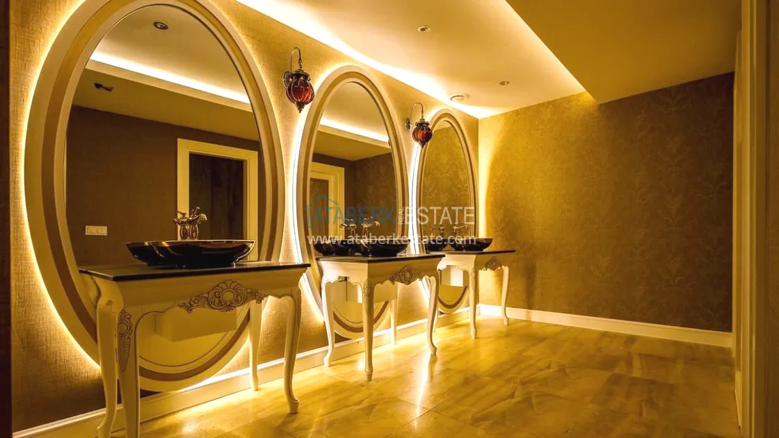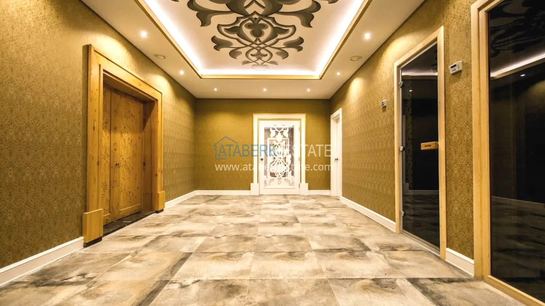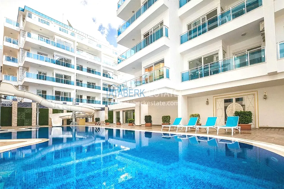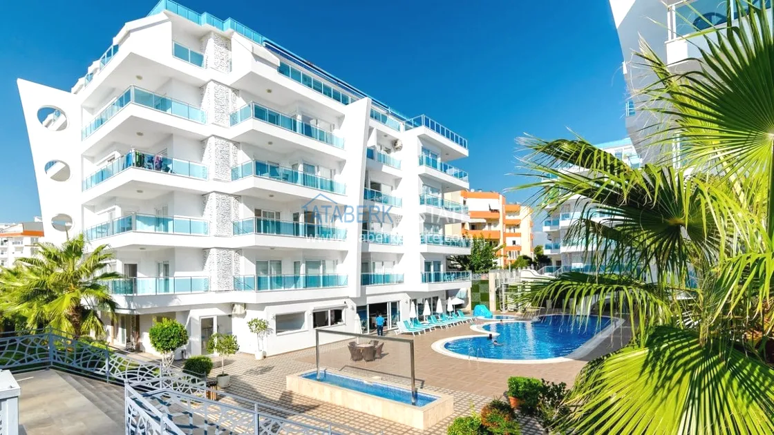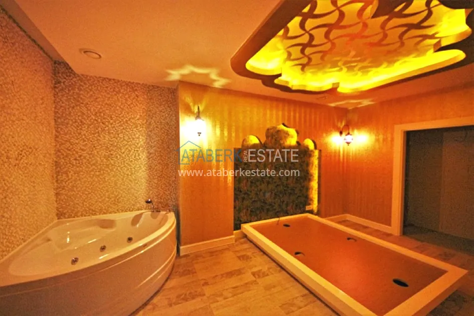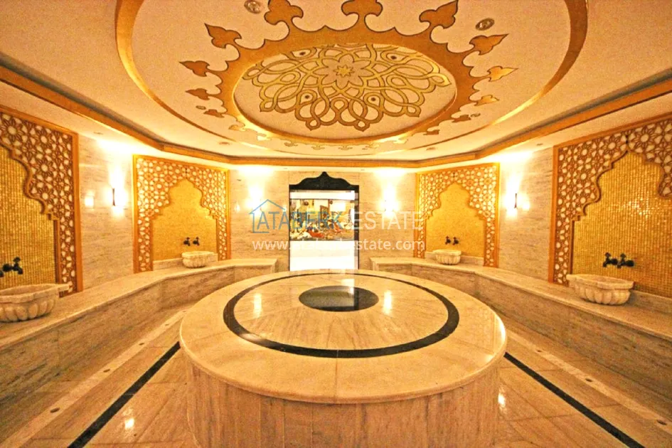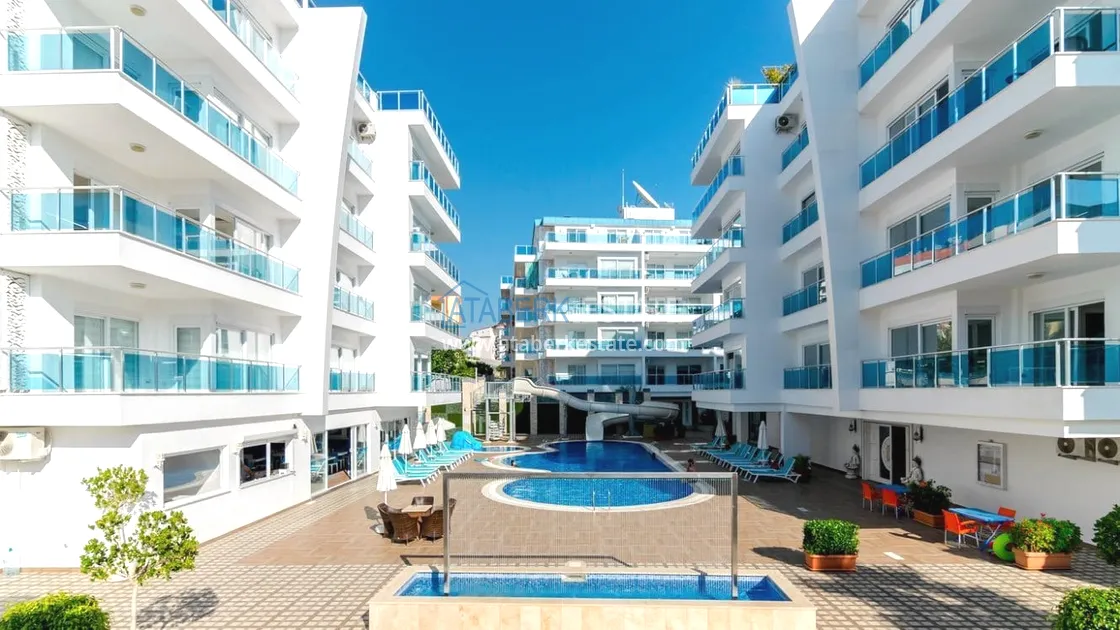 The complex consists of three blocks and a large, well-maintained surrounding area with a very developed infrastructure. Free WiFi is available in public areas of the complex. Next to the complex, a 10-minute walk away, is one of the best beaches in Alanya, Incekum, with golden fine sand and a gentle entrance to the sea. The district centre is 500 metres from the complex, and the nearest shop (24-hour) is just 100 metres away. There is also a chain supermarket, a butcher shop and a hairdresser nearby. The bus stop is 250 metres away.