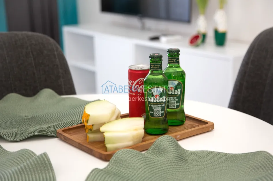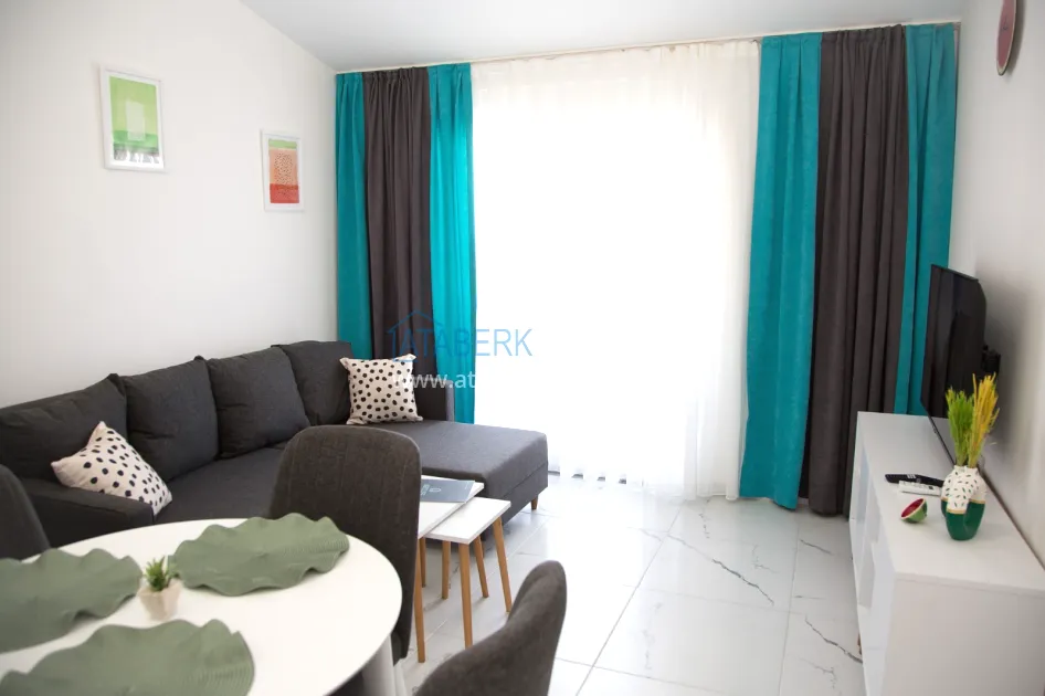 The two-room apartment of 45 sq.m. includes a separate bedroom, a fully equipped kitchen combined with a living room, a separate bathroom with a shower cabin and is equipped with everything necessary for a comfortable stay for a couple or a family of 4. We have two beds: a double bed in the bedroom and a sofa bed in the living room. The apartment has everything you need: a set of pots and pans, a blender, a citrus juicer, wine glasses, glasses, cups, a set of dishes for 4, salad bowls, a set of knives and cutlery, a grater, an opener, a corkscrew, etc. Also for your comfort: soft towels, hand soap, shower gel, washing gel, dishwashing liquid, in general, everything to make you feel “at home in Turkey!”