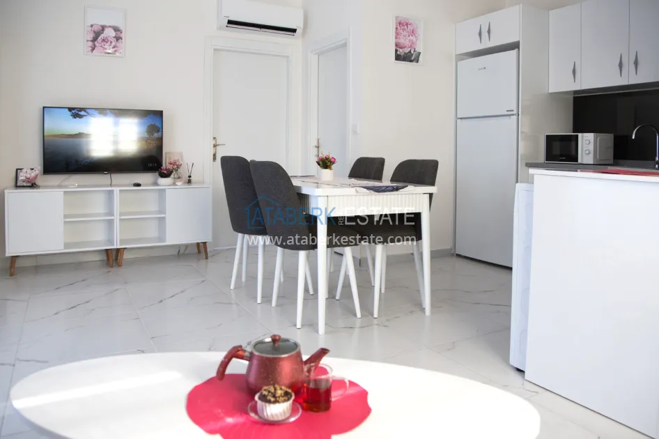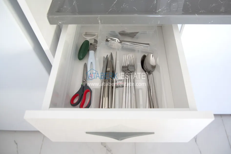 The two-room apartment of 45 sq.m. includes a separate bedroom, a fully equipped kitchen combined with a living room, a separate bathroom with a shower cabin and is equipped with everything necessary for a comfortable stay for a couple or a family of 4. We have two beds: a double bed in the bedroom and a sofa bed in the living room. The apartment has everything you need: a set of pots and pans, a blender, a citrus juicer, wine glasses, glasses, cups, a set of dishes for 4, salad bowls, a set of knives and cutlery, a grater, an opener, a corkscrew, etc. Also for your comfort: soft towels, hand soap, shower gel, washing gel, dishwashing liquid, in general, everything to make you feel “at home in Turkey!”