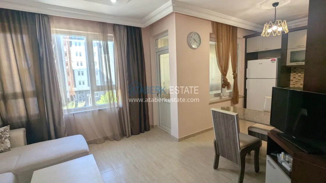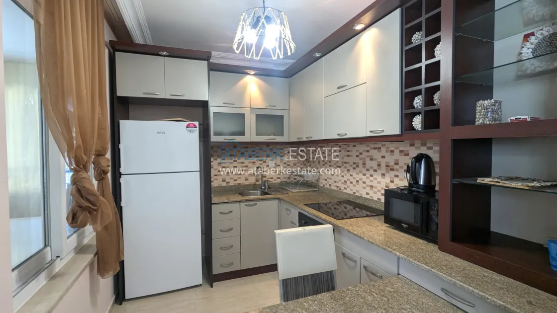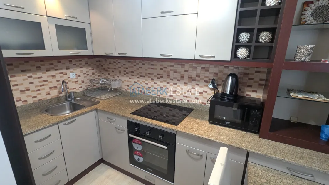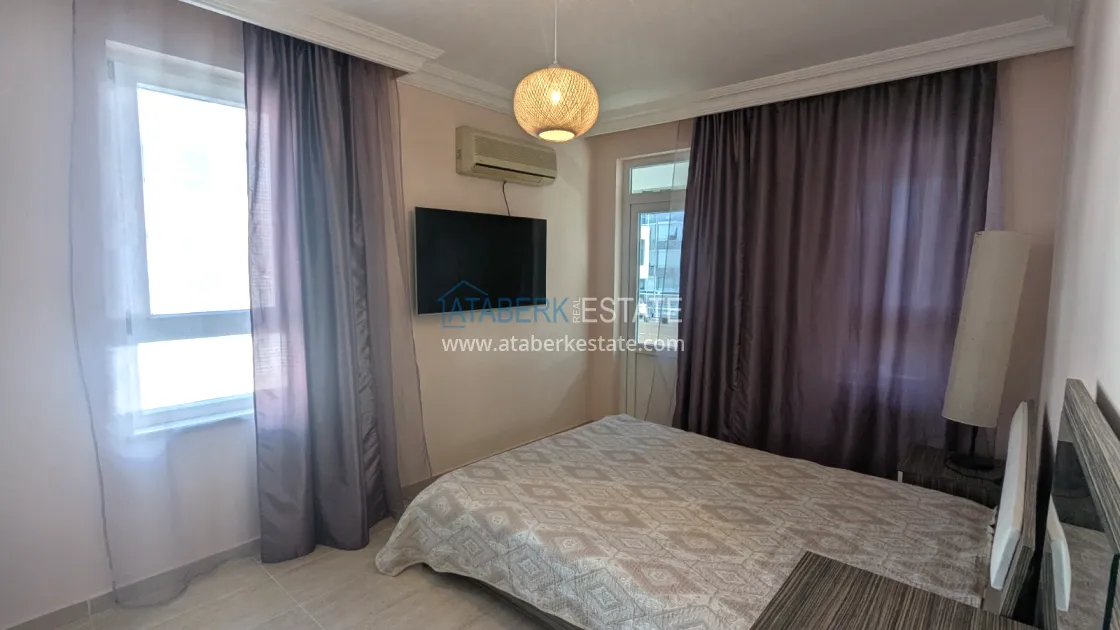 Ataberk Estate offers a comfortable two-bedroom apartment for rent just 50 meters from the beautiful Mediterranean beach. The three-room apartment is suitable for both a wonderful vacation and a long stay in Alanya.