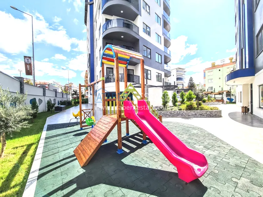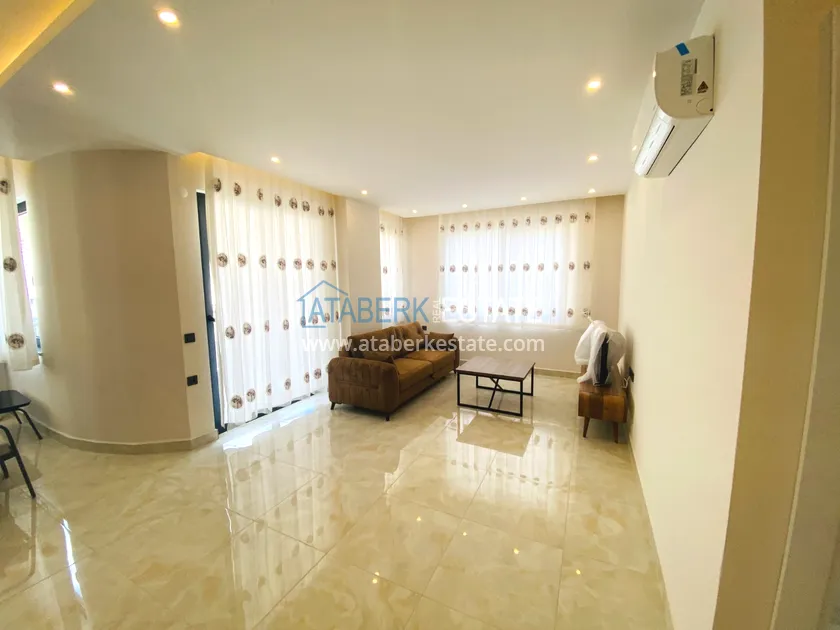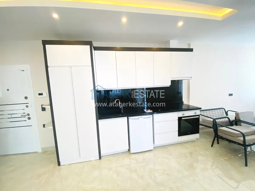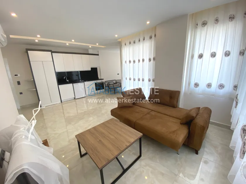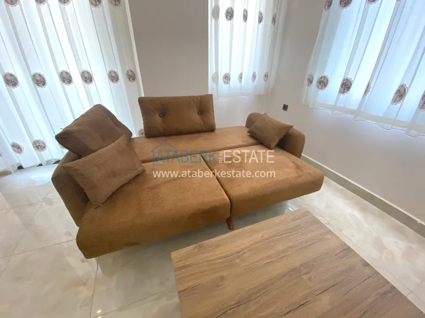 In the center of Alanya, near Cleopatra Beach, a furnished one-bedroom apartment is for rent, located in a new modern residential complex.