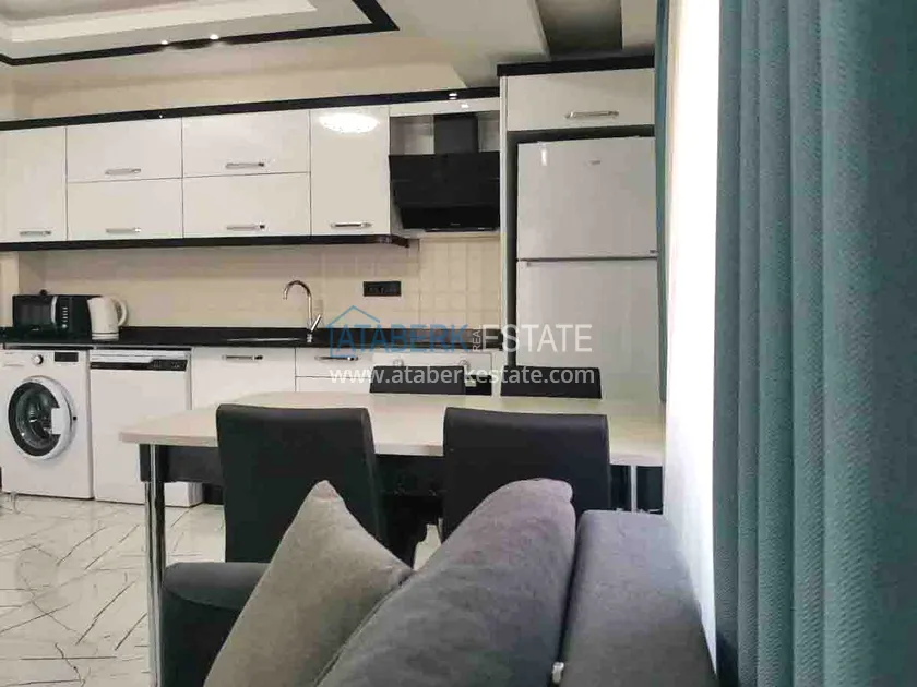 The offered apartment is fully ready for living, located in a young, modern complex with a rooftop lounge area, a 3-minute walk from the nearest city beach. In addition, the residence is located in the city center. The central Ataturk Street is 50 meters away, with all kinds of restaurants, cafes, bars, shops, pharmacies, bus stops, and ATMs. A beautiful promenade, historical sights and a port with pirate ships and pleasure yachts are also within walking distance