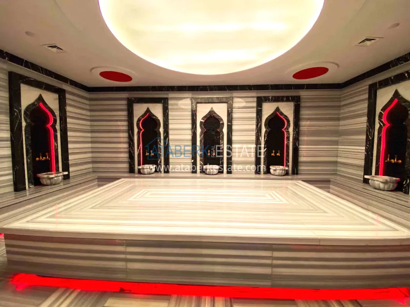 The residential complex is located in Mahmutlar, a very popular resort area of Alanya. A city in a city is also called this district, since its infrastructure is fully equal to that of the city. It has a beautiful beach and a well-maintained promenade with a bike path and beach cafes, as well as many parks and outdoor sports grounds.