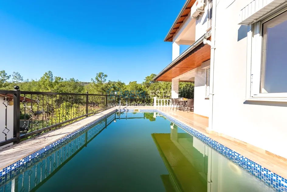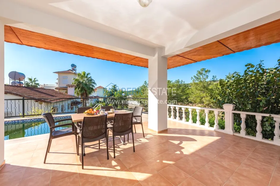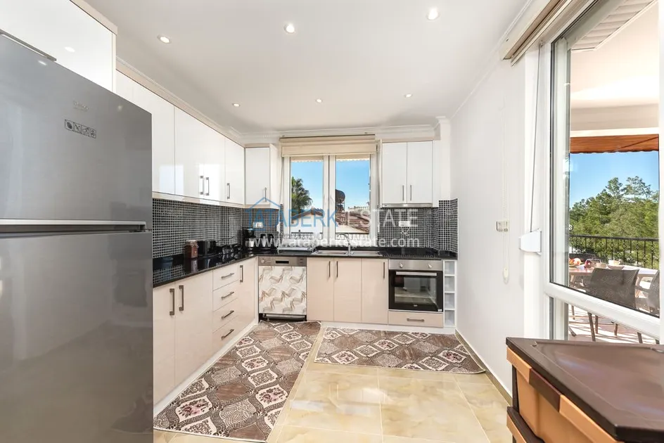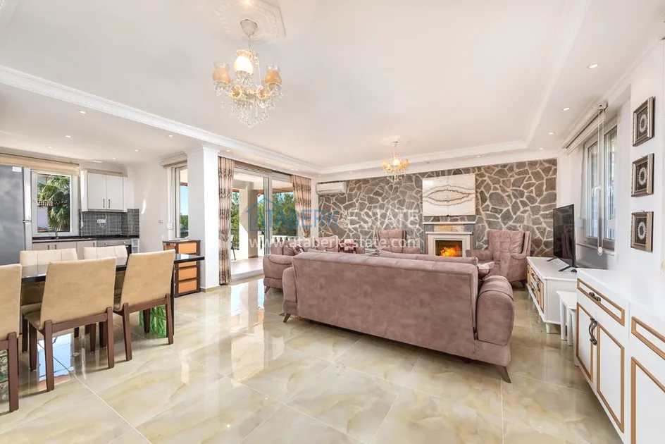 The villa is part of a closed residential complex, layout 3 + 1, total area 185 m2. On two floors of the house there are: a spacious living room with an open-type kitchen, 3 bedrooms, 2 bathrooms, 3 balconies and a spacious terrace next to a private pool. The price includes all furniture and appliances, all as in the photo.