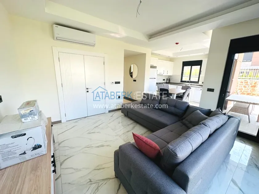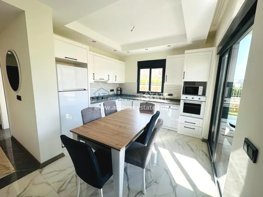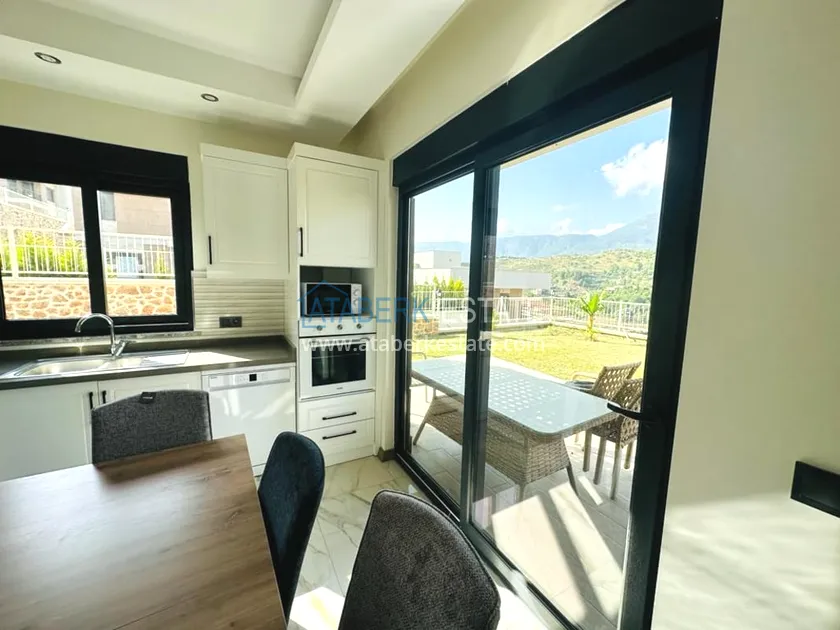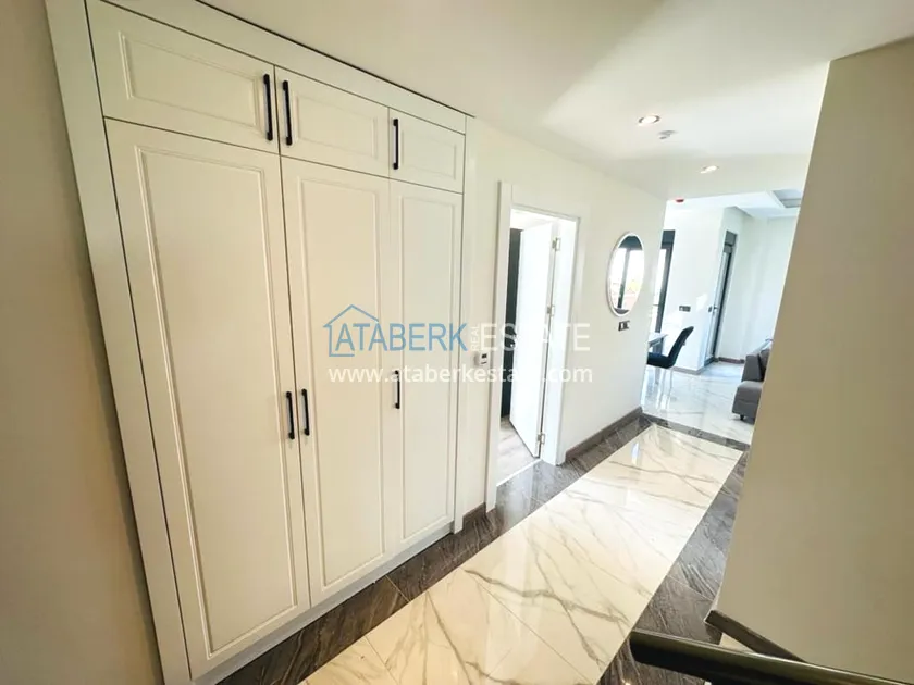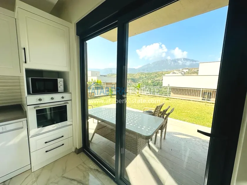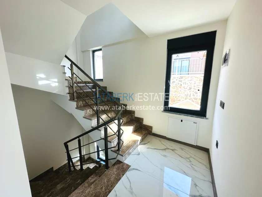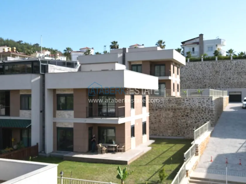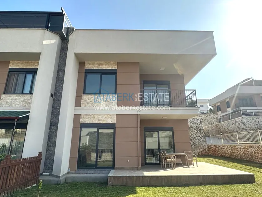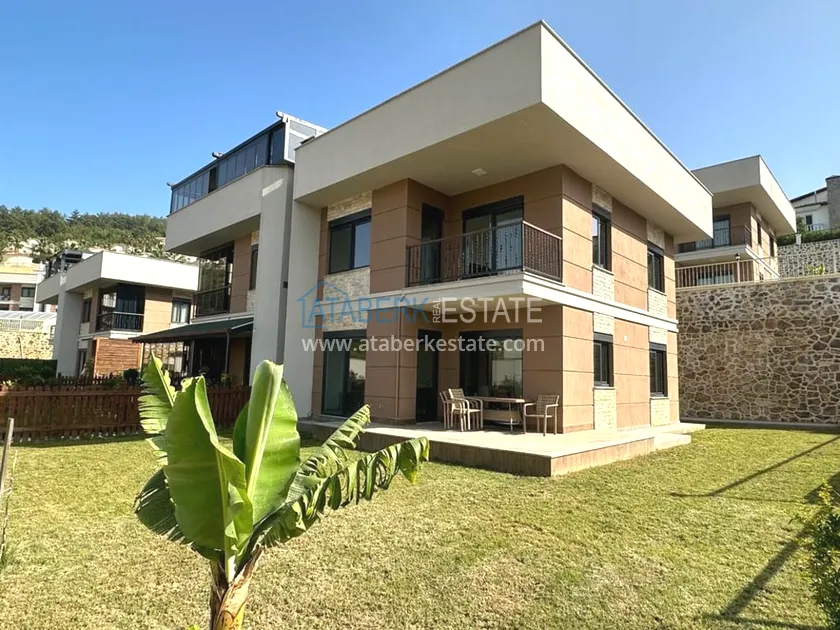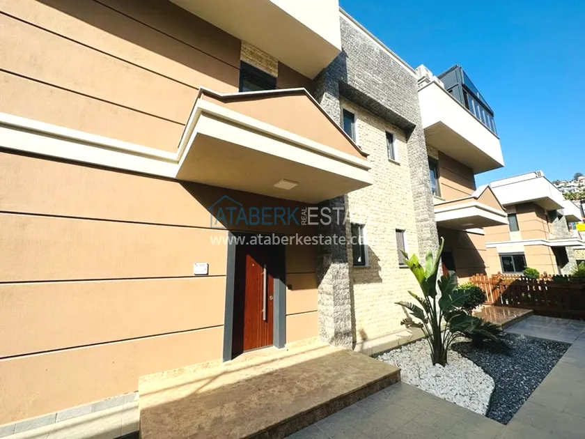 A 3+1 villa for two owners with an area of 235 m2 - on the ground floor: a living room combined with a kitchen, a bedroom, a depot bathroom. The second floor has two bedrooms, a bathroom and a balcony. On the third floor, there is a large terrace with sea views. A private garage and a private area with an orchard are also available. The villa has all the necessary furniture, household appliances and household items.