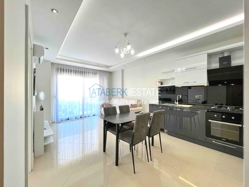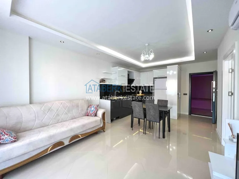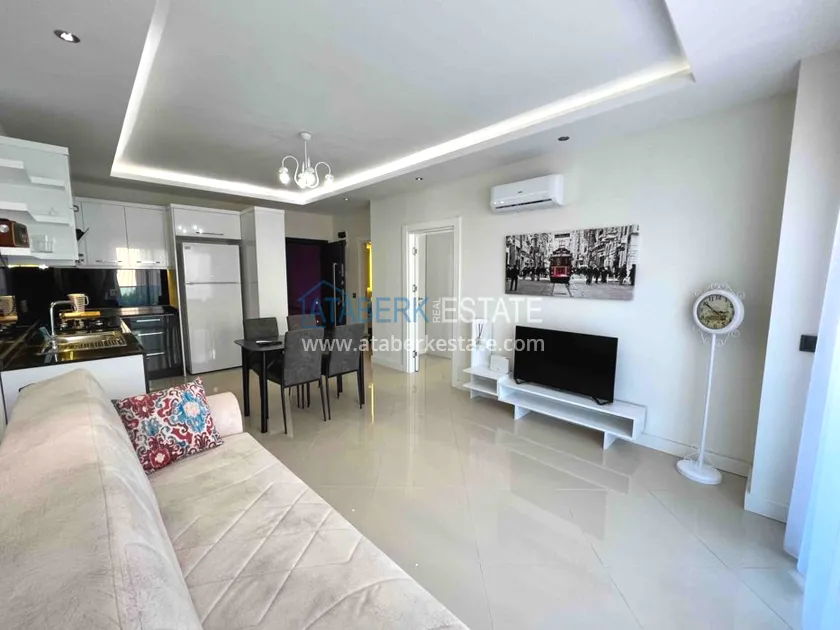 Apartment layout 1 + 1, total area 55 m2, includes: a living room combined with an American-style kitchen, one bedroom, a bathroom and a balcony. Located on the first residential floor (actually 2), east side, mountain view. The apartment has all the necessary upholstered and cabinet furniture, household appliances, air conditioning, a water heater, internet and cable TV with Russian channels.