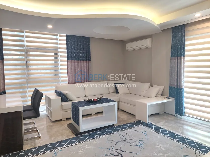 The apartment is located on the ground floor, the 2+1 layout includes: a living room combined with a kitchen area, 2 bedrooms, 2 bathrooms (a shared bathroom and a private one in the master bedroom) and 2 balconies. The apartment is fully equipped with furniture, necessary household appliances and is ready for living.