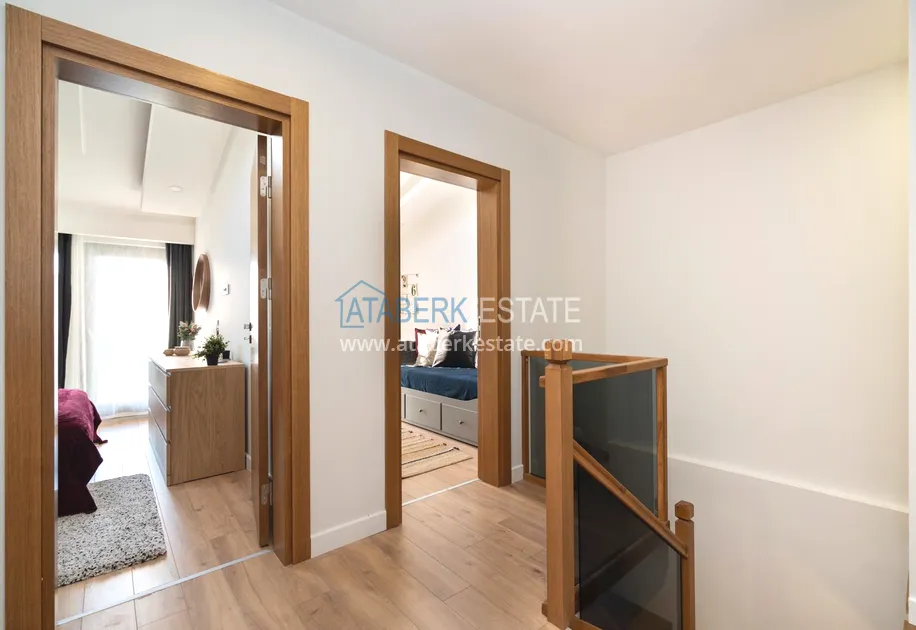 The residential complex consists of two blocks, each with 22 apartments, and a beautiful landscaped area. 2+1 apartments and 2+1 duplexes are offered for sale, with a total area of 110 to 120 sq. m. The price of apartments includes: cabinet built-in furniture, household appliances, "Smart House" system, parquet is laid on the floor.