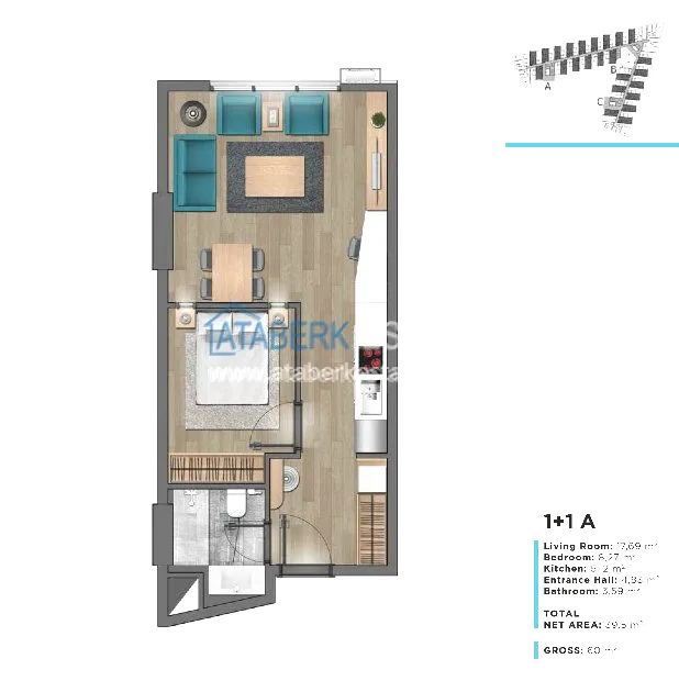 The construction of the project was completed in December 2018. The project area is 6000 m2. Unique architectural design, modern interior and stunning sea views from every terrace. The complex consists of three blocks, 495 apartments. There are apartments of the following layouts to choose from: 1 + 1 60 sq. m, 2+1 from 87 to 137 sq. m.