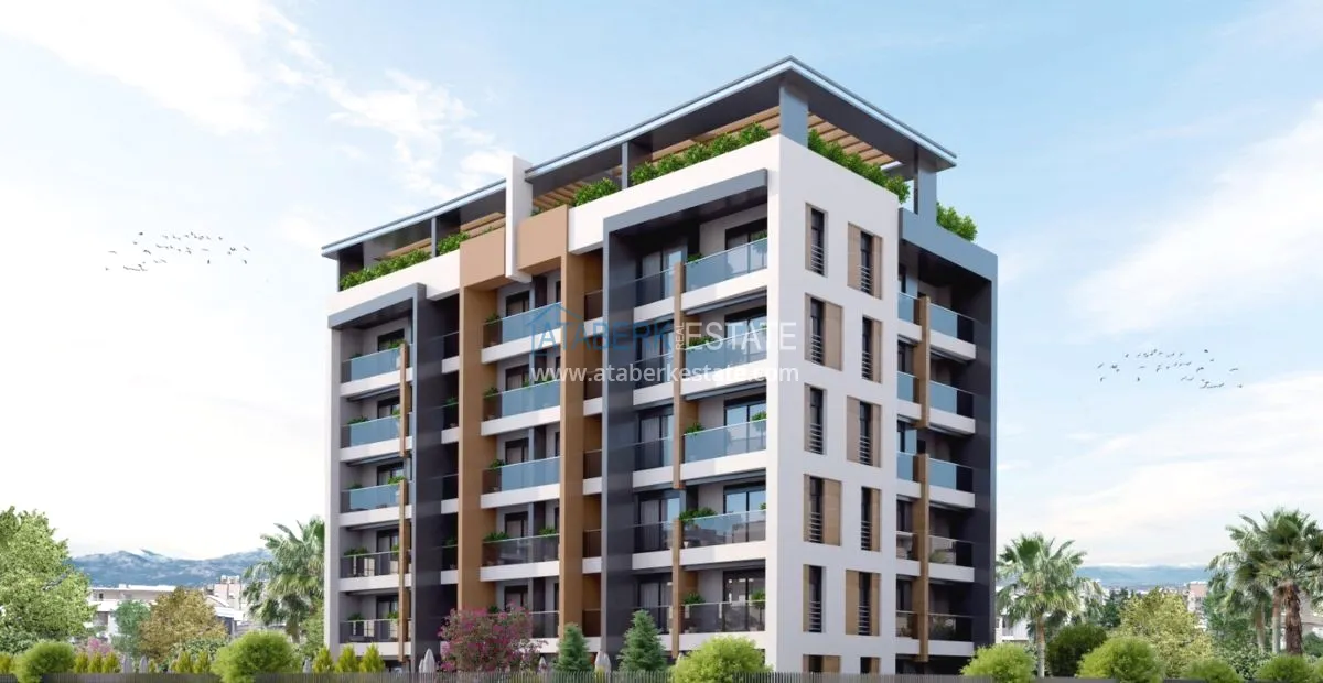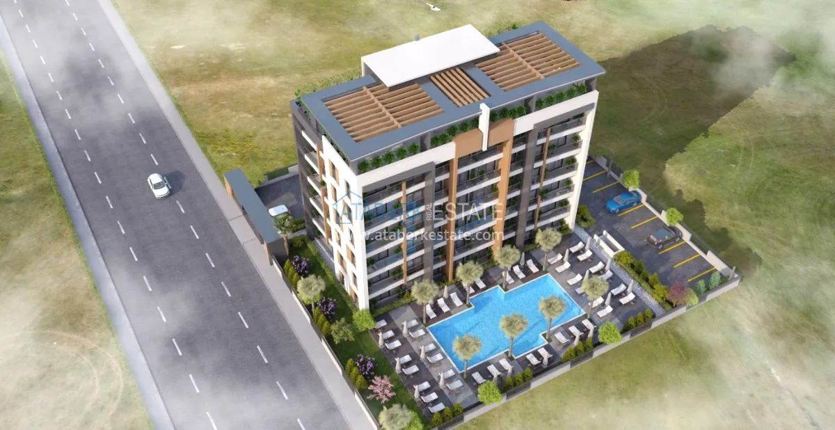 The complex includes: swimming pool, outdoor parking, fitness center, 2 elevators, garden, video surveillance. The construction company, which has established itself in the Turkish real estate market as one of the most reliable, uses only the highest quality building materials, provides noise and waterproofing of its facilities. The complex will be designed in the "Loft" style, and each apartment will be created with a beautiful modern design. The residence itself has a very good location next to a park, a kindergarten and a clinic. The path to the sandy beach of Lara will be no more than 6 km, to Antalya Airport 5 km, the bus stop is a two-minute walk from the complex.