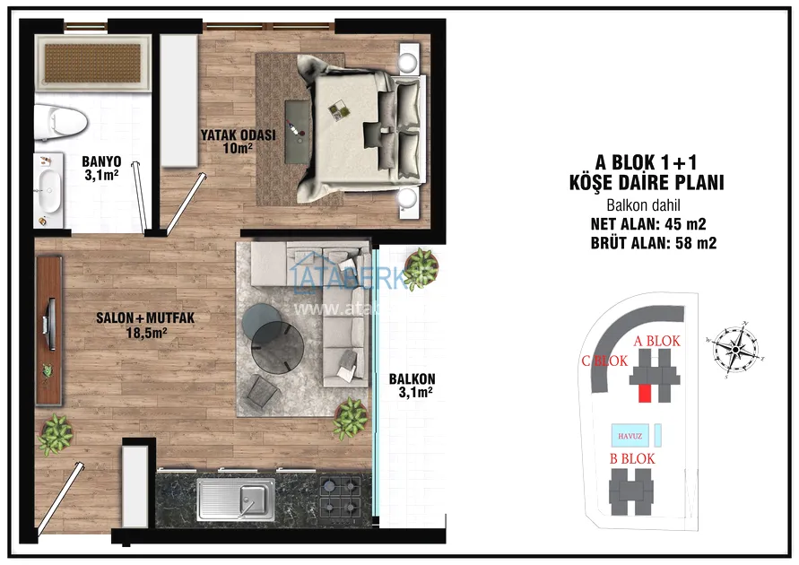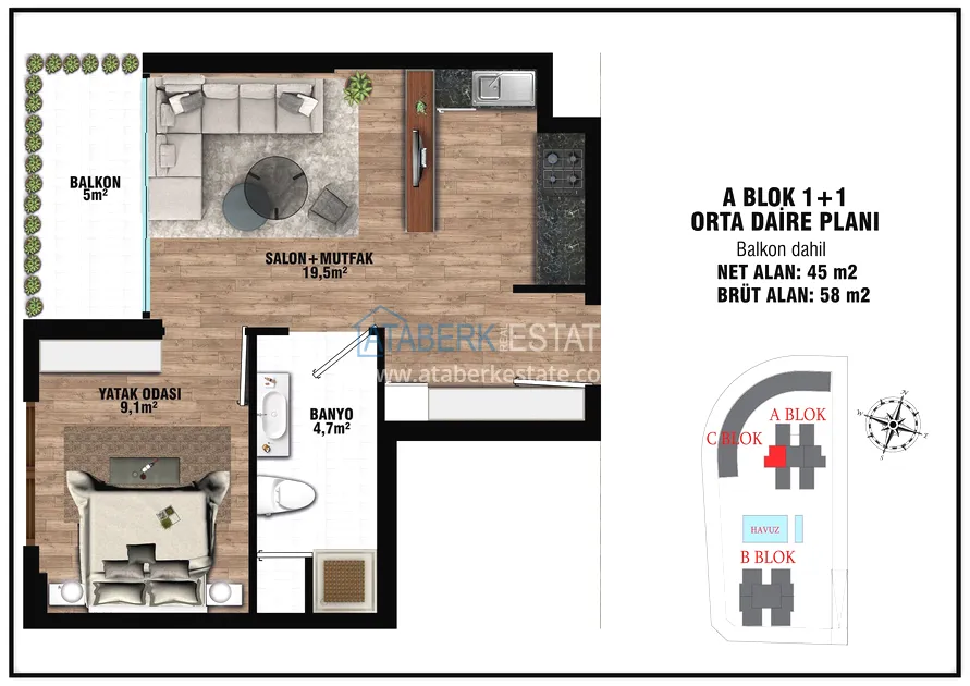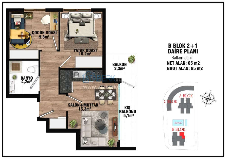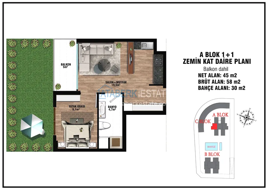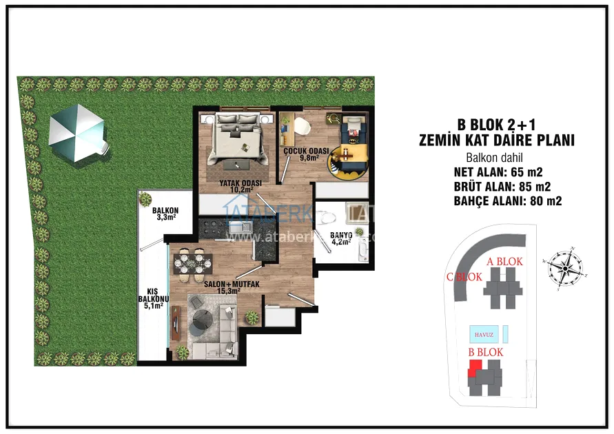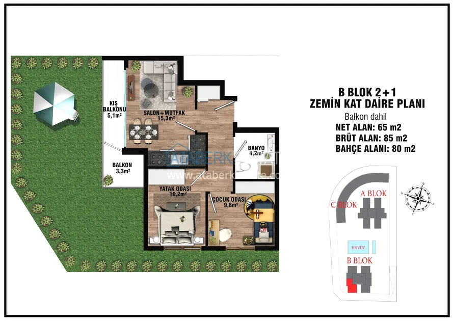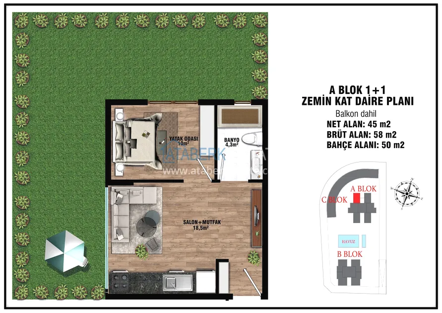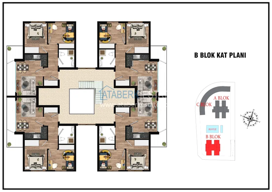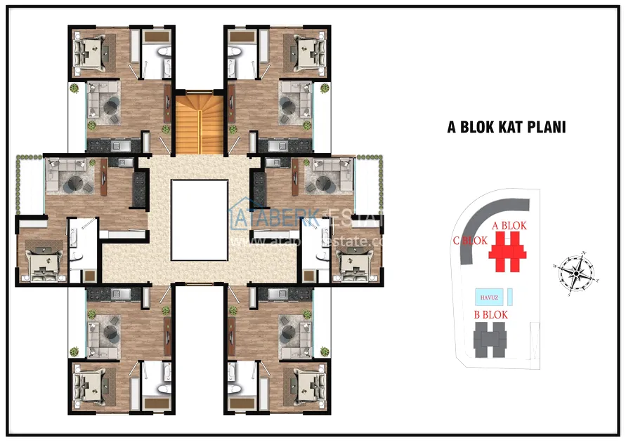 The project presents 2 blocks of 5 floors each, which will be located in a closed landscaped area with a good range of services for a more comfortable stay, even charging stations for electric vehicles will be provided. The complex will be located 7 km from the gorgeous sandy beaches of Lara and 15 km from the city center.